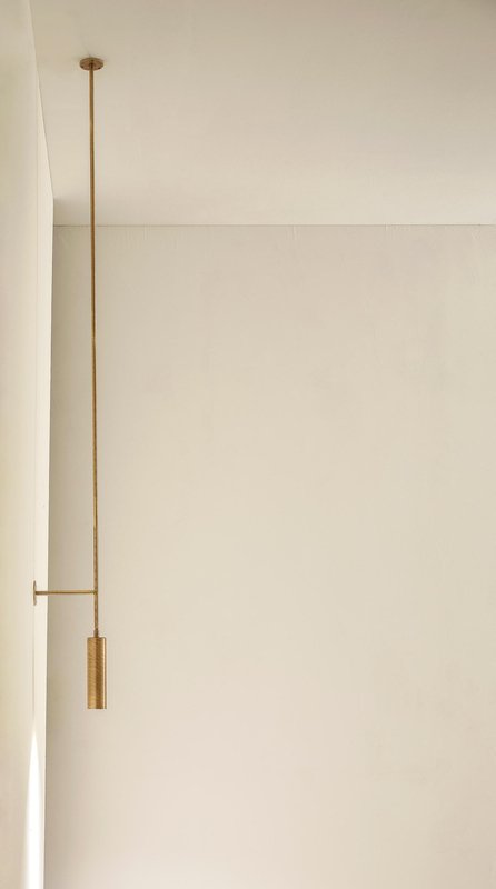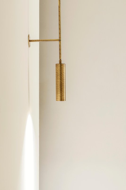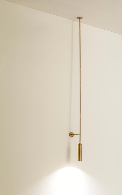 Tf511 Pendant Lamp in Satin Brass with Orientable Tubular Diffuser by Daluce