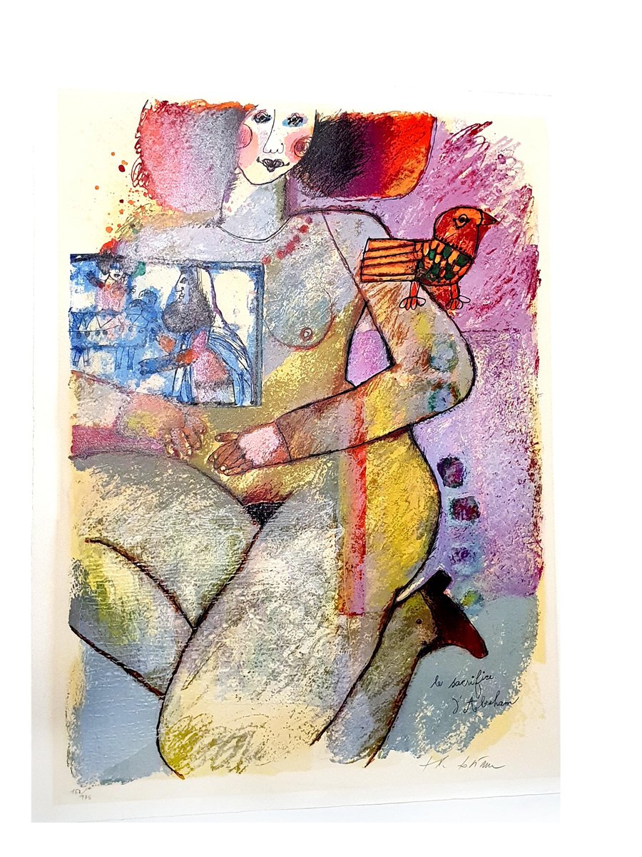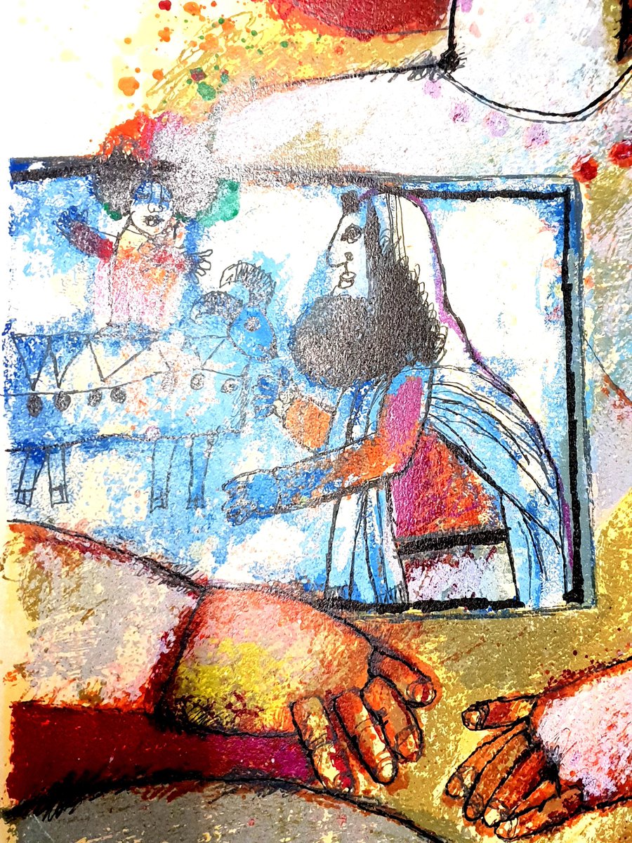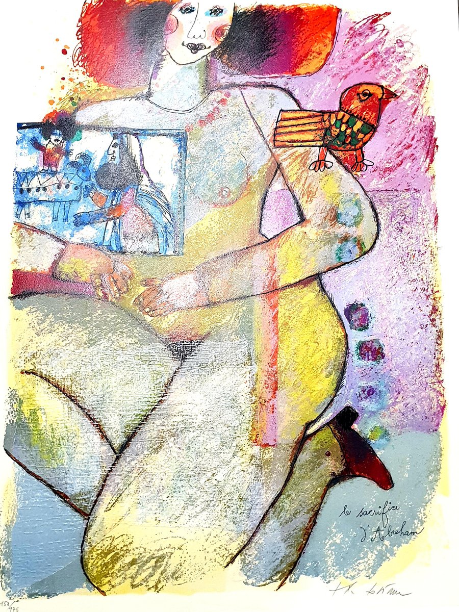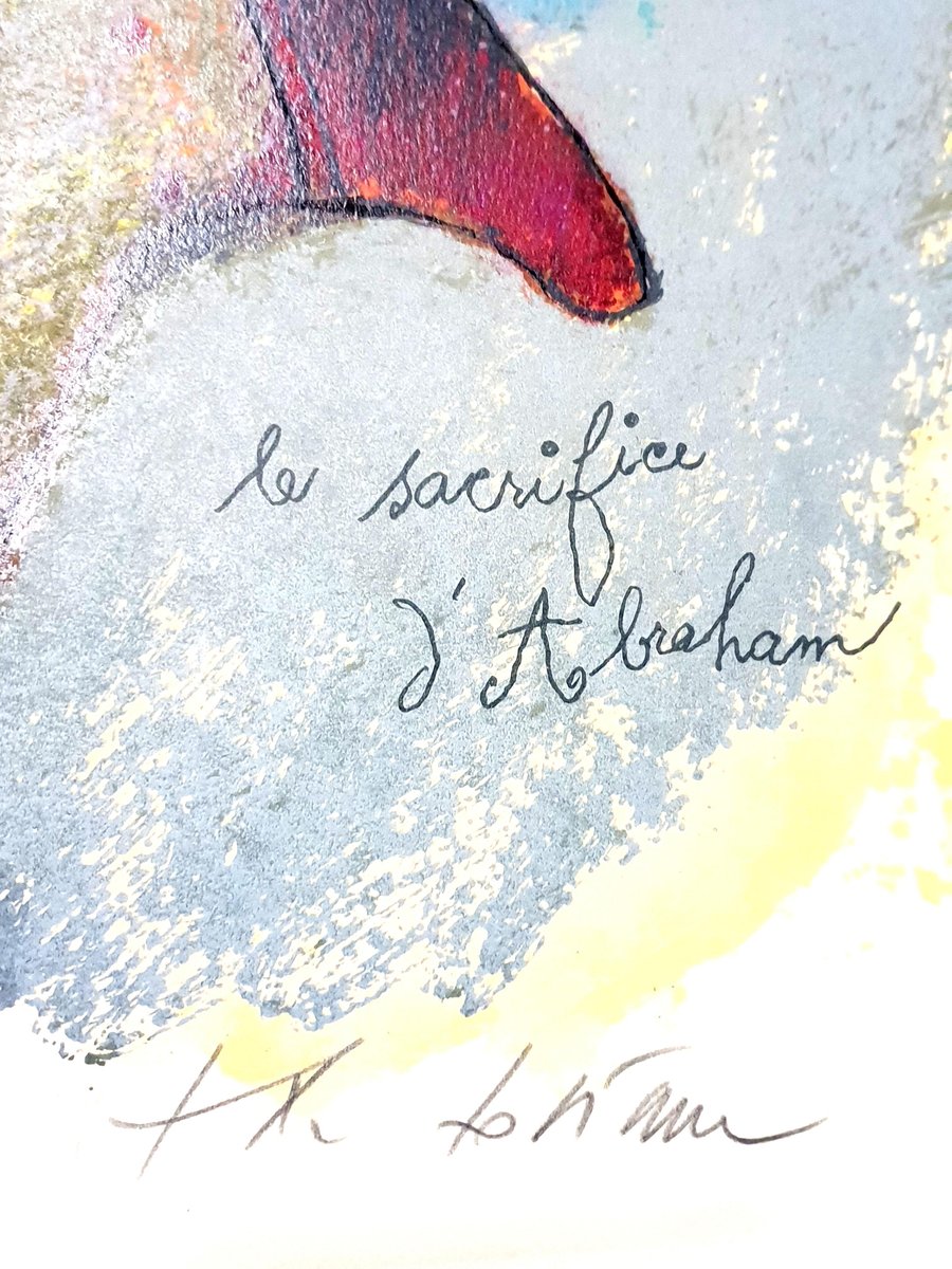 Théo Tobiasse Title: Le Sacrifice d'Abraham Signed and Numbered Dimensions: 57 x 76 cm Information : Edition of 175 Condition : Excellent Theo Tobiasse (born in 1927) Theo Tobiasse, master of the Paris School, was born in Jaffa, Israel in 1927 of Lithuanian parents. His father, a Zionist who was a printer by profession, had brought the family to Jaffa from Lithuania in 1925. Because of financial difficulties, the family returned to Lithuania when Tobiasse was still very young. However, by 1931 the family had settled in Paris. Tobiasse has never forgotten his first sight of Paris, the City of Light. During the Nazi occupation of Paris, the Tobiasse family lived hidden for two years in a minuscule apartment in Paris. From July, 1942 through August, 1944, the family never ventured outside, nor would they turn on the lights or burn candles. By the feeble light that filtered through the closed shutters, Theo spent his time reading, drawing, and playing chess with his father. The chessboard pattern seen in many of Theo’s paintings is symbolic of this time in his life. The only indication of time passing was the sound of Nazi boots in the streets and on the staircase of their house - more than once they were very close to being discovered. On August 25, 1944 Paris was liberated, and Theo walked out of the apartment with a large portfolio of drawings into the light of a cloudy day. It’s interesting to note that LeRoy Neiman was with the U.S. Army that liberated Paris that day! After the war Tobiasse worked for 15 years as a very successful advertising artist, first in Paris and then in Nice. He painted as often as he could during this time, often at night. In 1960 he entered his first art show and won the Grand Prize. Since 1961, Tobiasse has enjoyed incredible success as far afield as New York, Paris, Tel Aviv, Caracas and Tokyo, in all of which he has had one-man shows. Art Expo New York, the world’s largest art trade show, listed Tobiasse as one of the only Museum Quality artists represented when American Fine Art exhibited his works there in 1998. A sentimental and private individual, Tobiasse puts his innermost feelings into all of his works and his little “secret” into his original paintings: a personal message which he writes in Yiddish and then glues onto the canvas before painting or collageing over it. No one will ever know the message without destroying the painting itself! Tobiasse’s art is a product of intellect, submerged memories and laborious experimentation with various media. As Chagall and Picasso did before him, Tobiasse looks deeper into his work, seeking to express the inner world of man. Surrealism taught him to be experimental, to juxtapose pictorial elements in order to redefine them. He welcomes the new freedom of the 20th Century where there are no rules. Space can be twisted, altered, folded and rendered by its own reality. His influences are as diverse as the etchings on a teapot carried from Lithuania to the Winged Victory as it is set in the Louvre. He imitates no one, but has sensitively collected imagery which evolves into an art that is truly his. It is the brilliant vision of Theo Tobiasse, expressed in his work, that echoes the vocabulary of modern art.