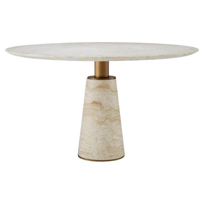 Travertine Dining Table with Brushed Brass Finish by Eichholtz