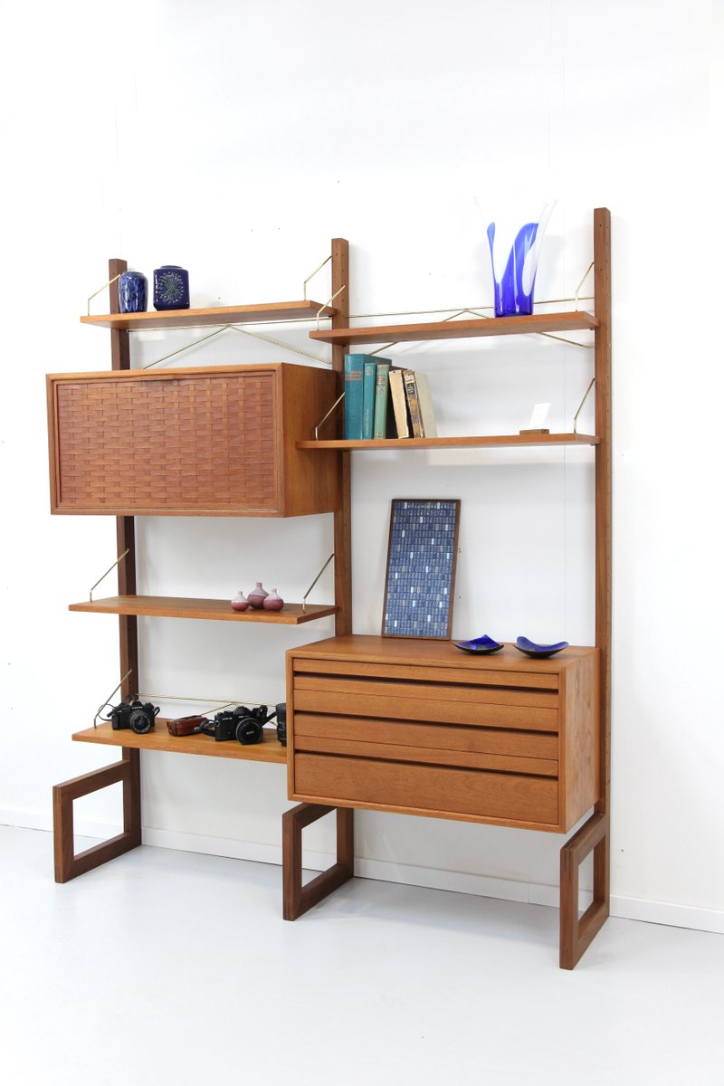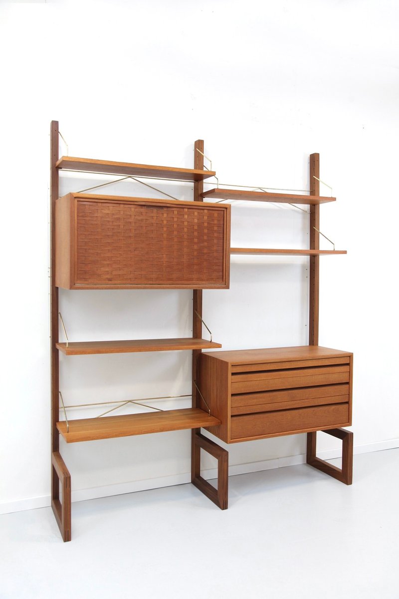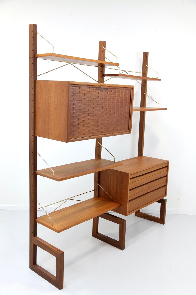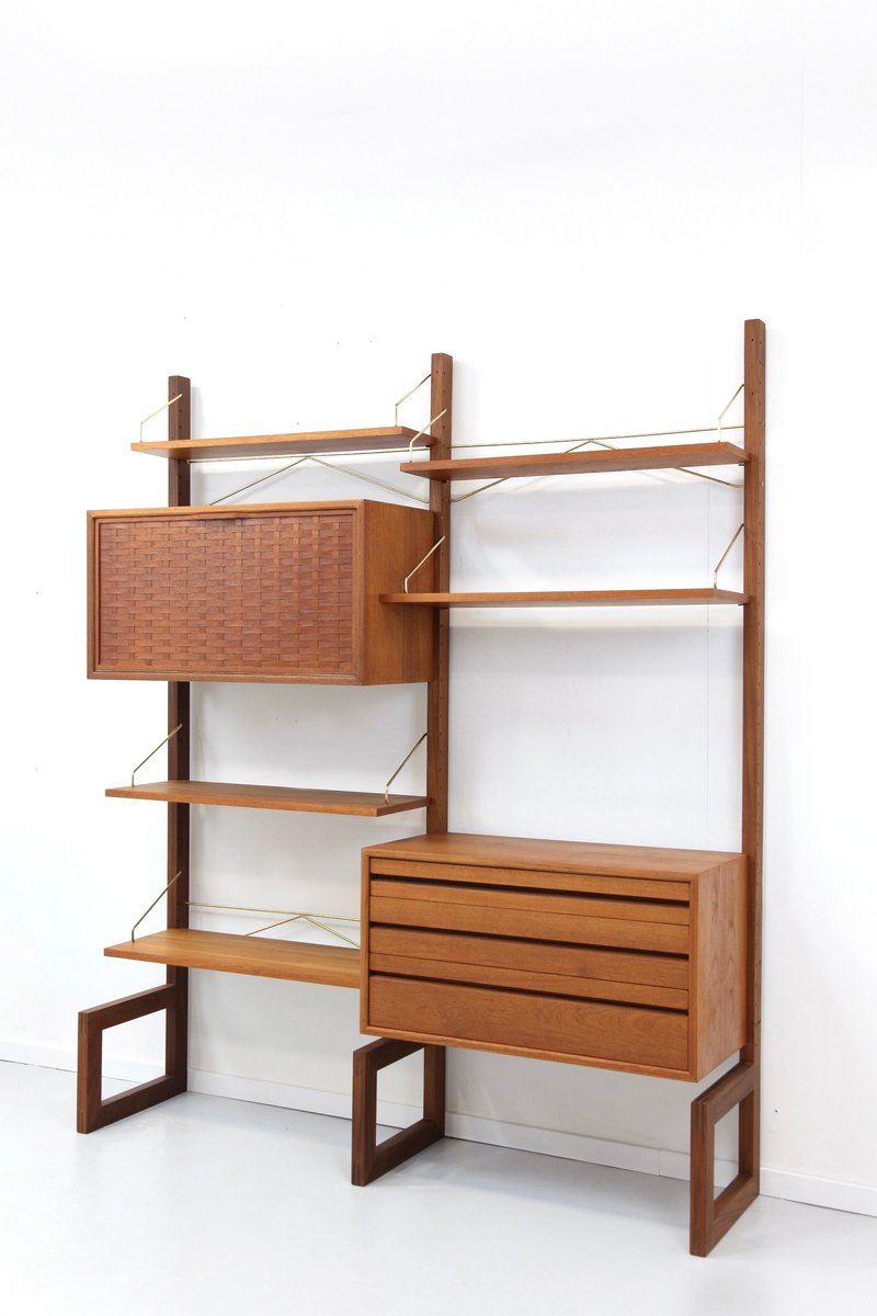 Two-Strip Freestanding Royal System Shelving System in Teak by Poul Cadovius, 1960s, Set of 10
