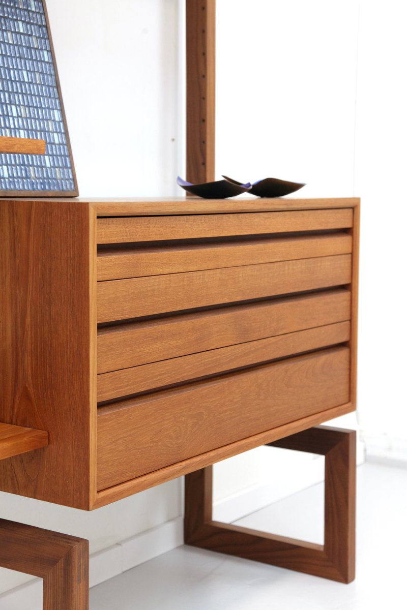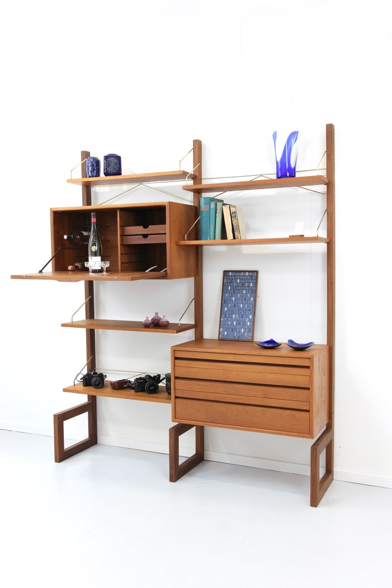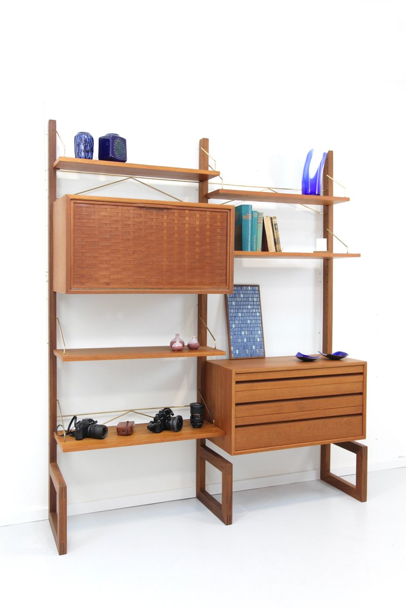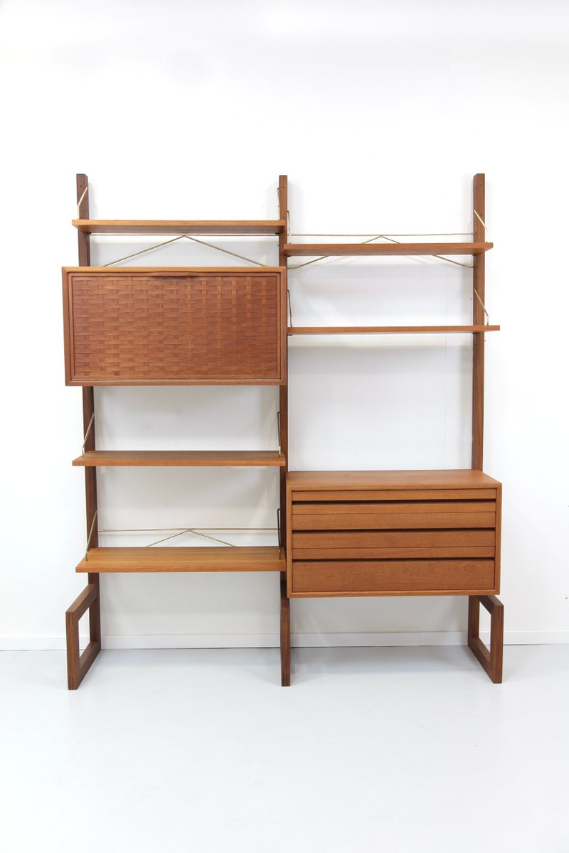 Two-Strip Freestanding Royal System Shelving System in Teak by Poul Cadovius, 1960s, Set of 10