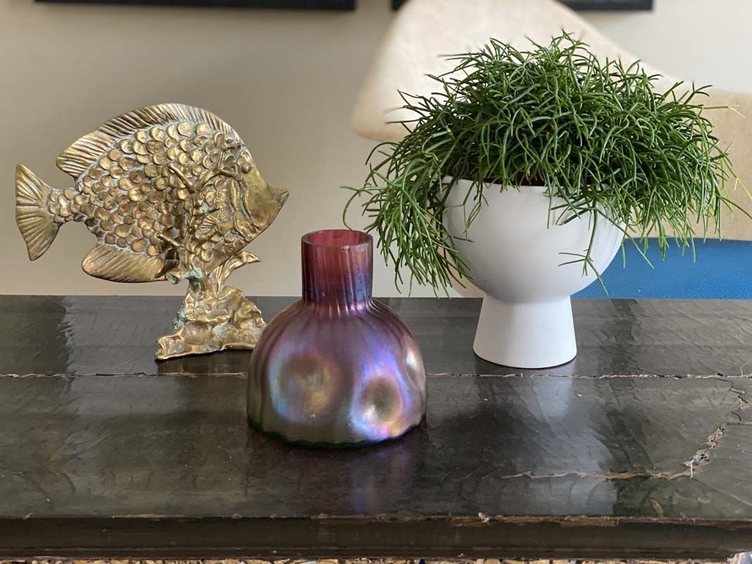 Vase with Metal Ornament in Style of Loetz