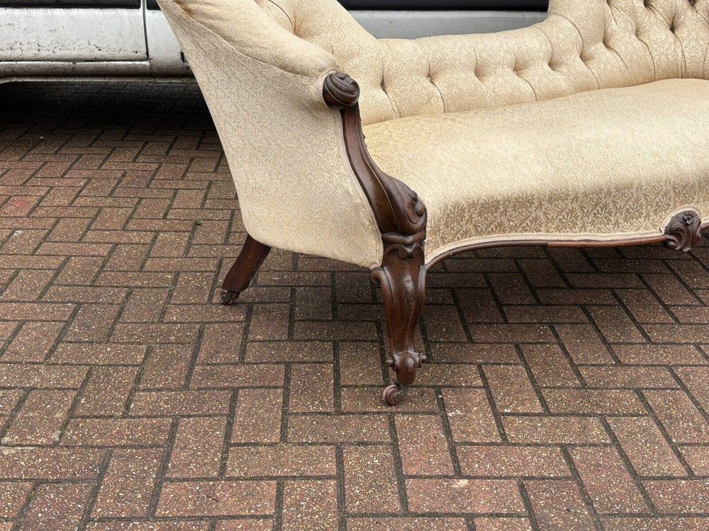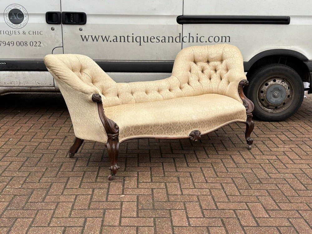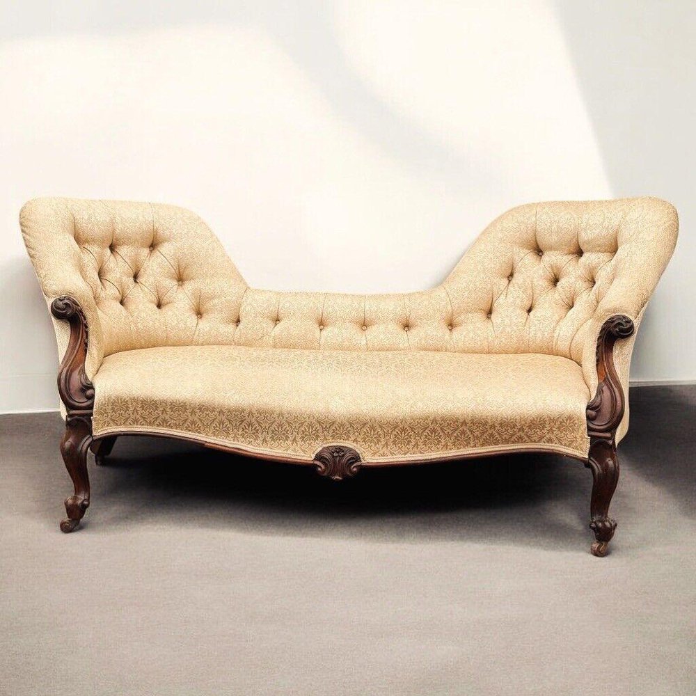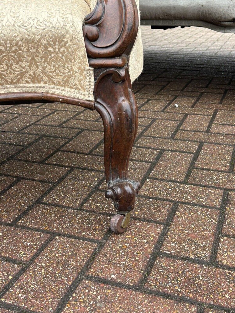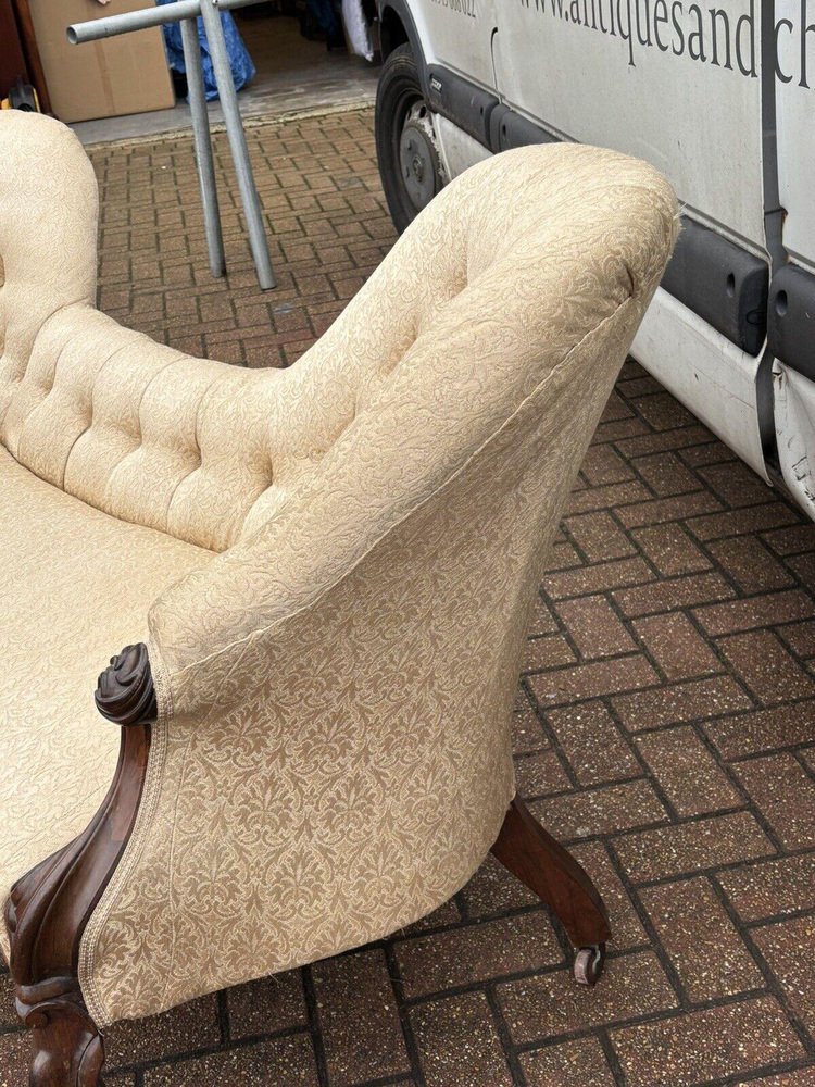 Victorian Sofa with Buttoned Back, Cabriole Legs & Brass Castors