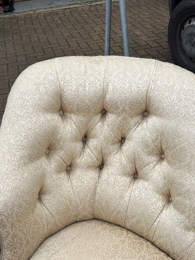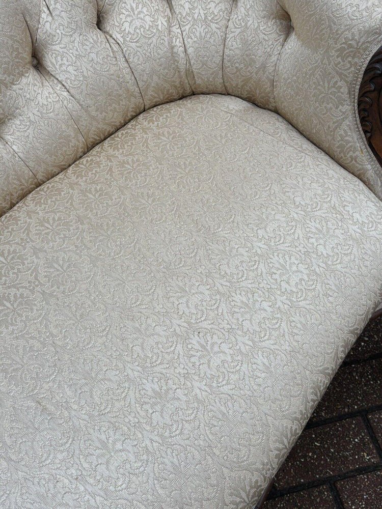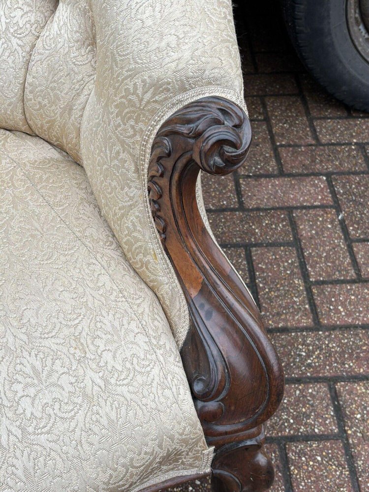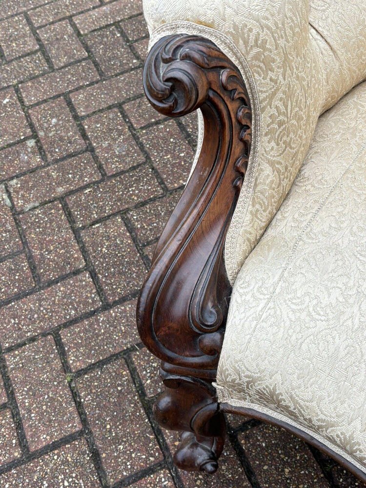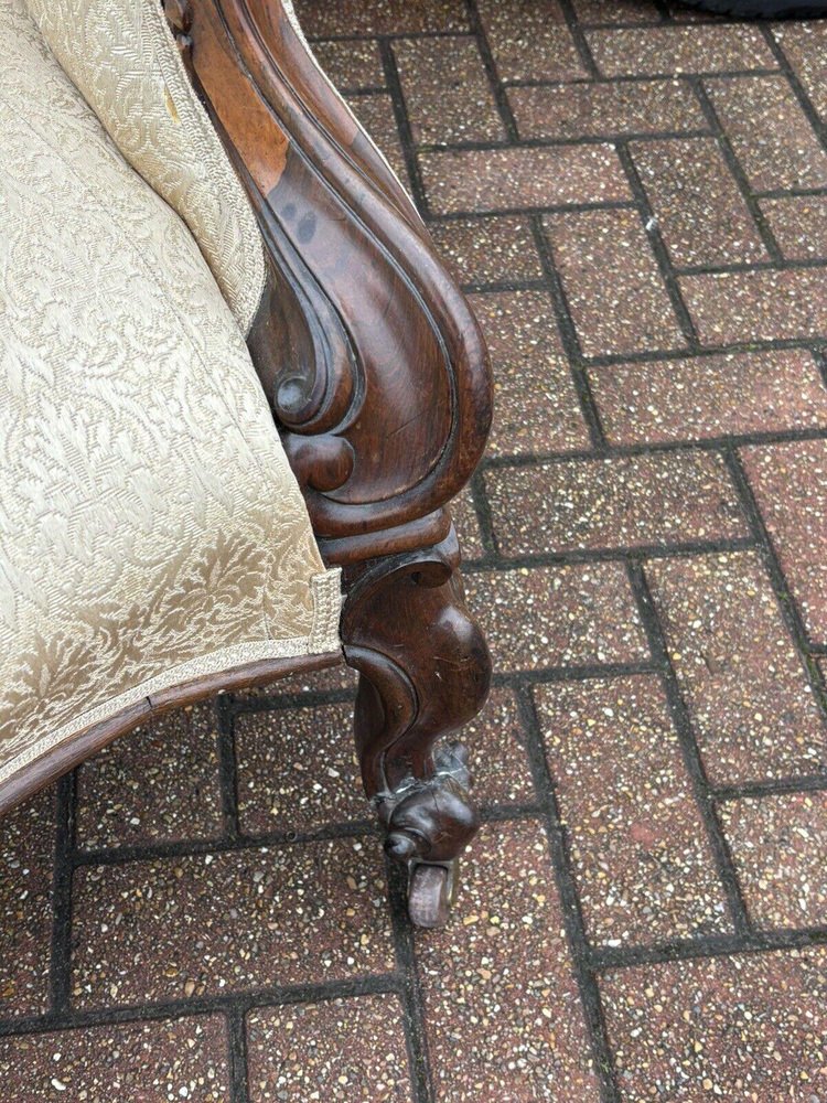 Victorian Sofa with Buttoned Back, Cabriole Legs & Brass Castors