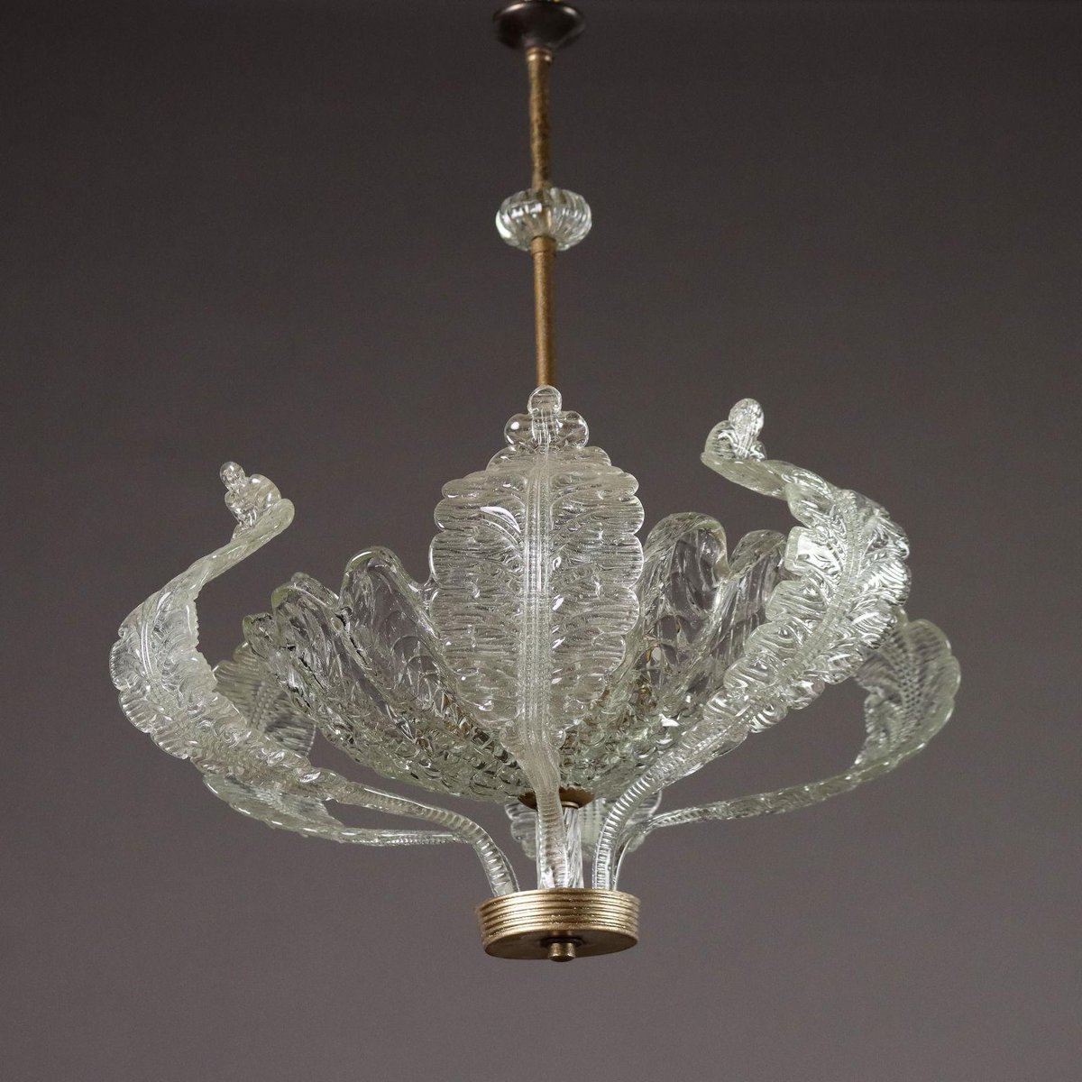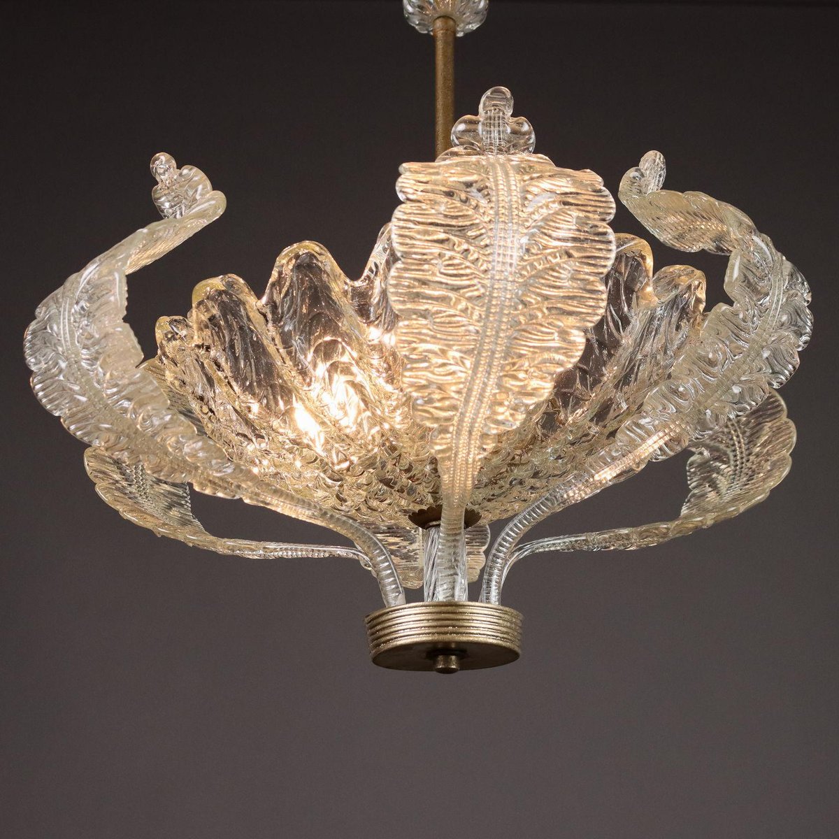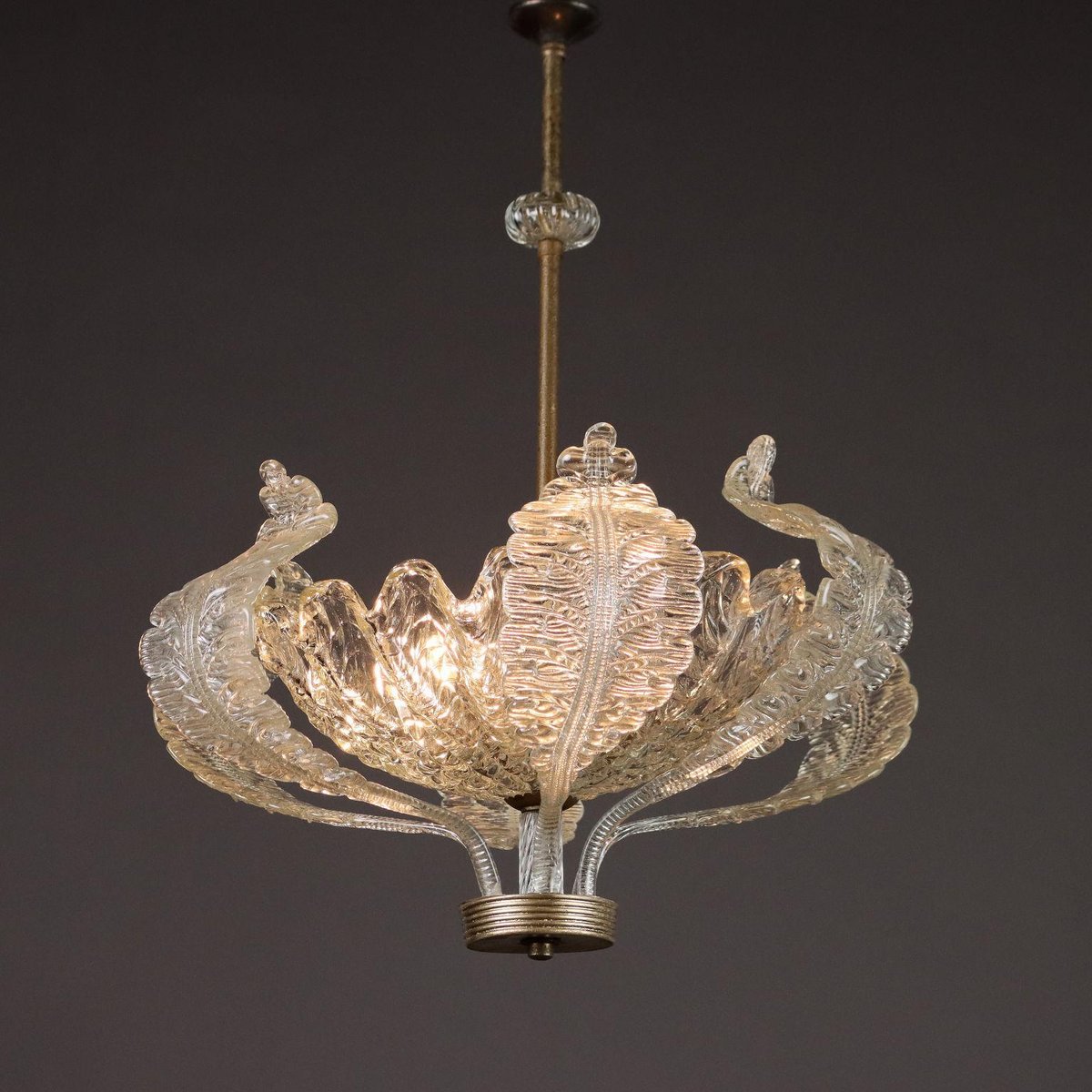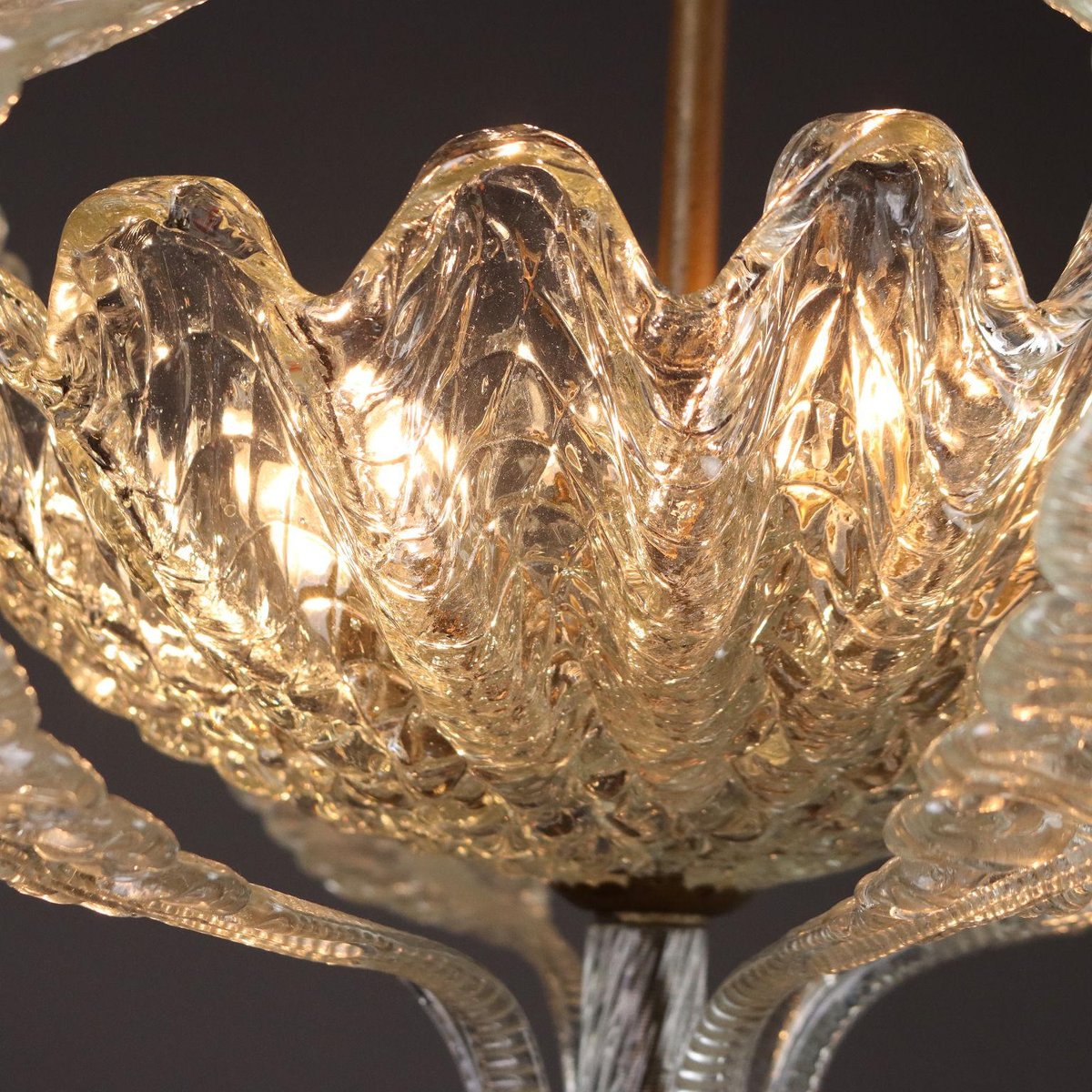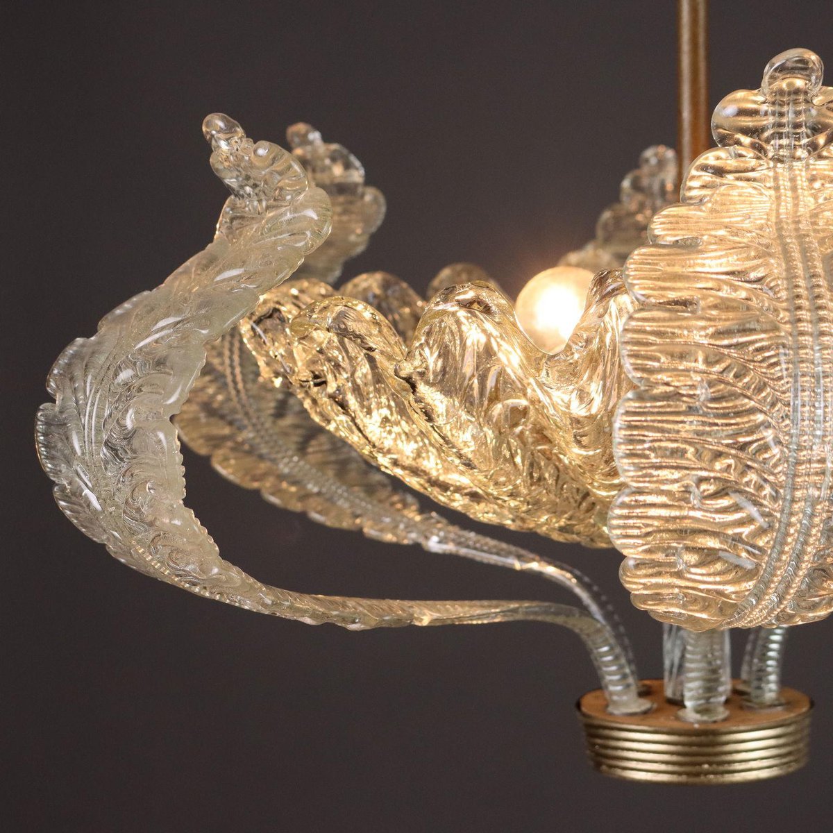 Vintage Ceiling Lamp in Brass & Murano Glass, Italy, 1950s