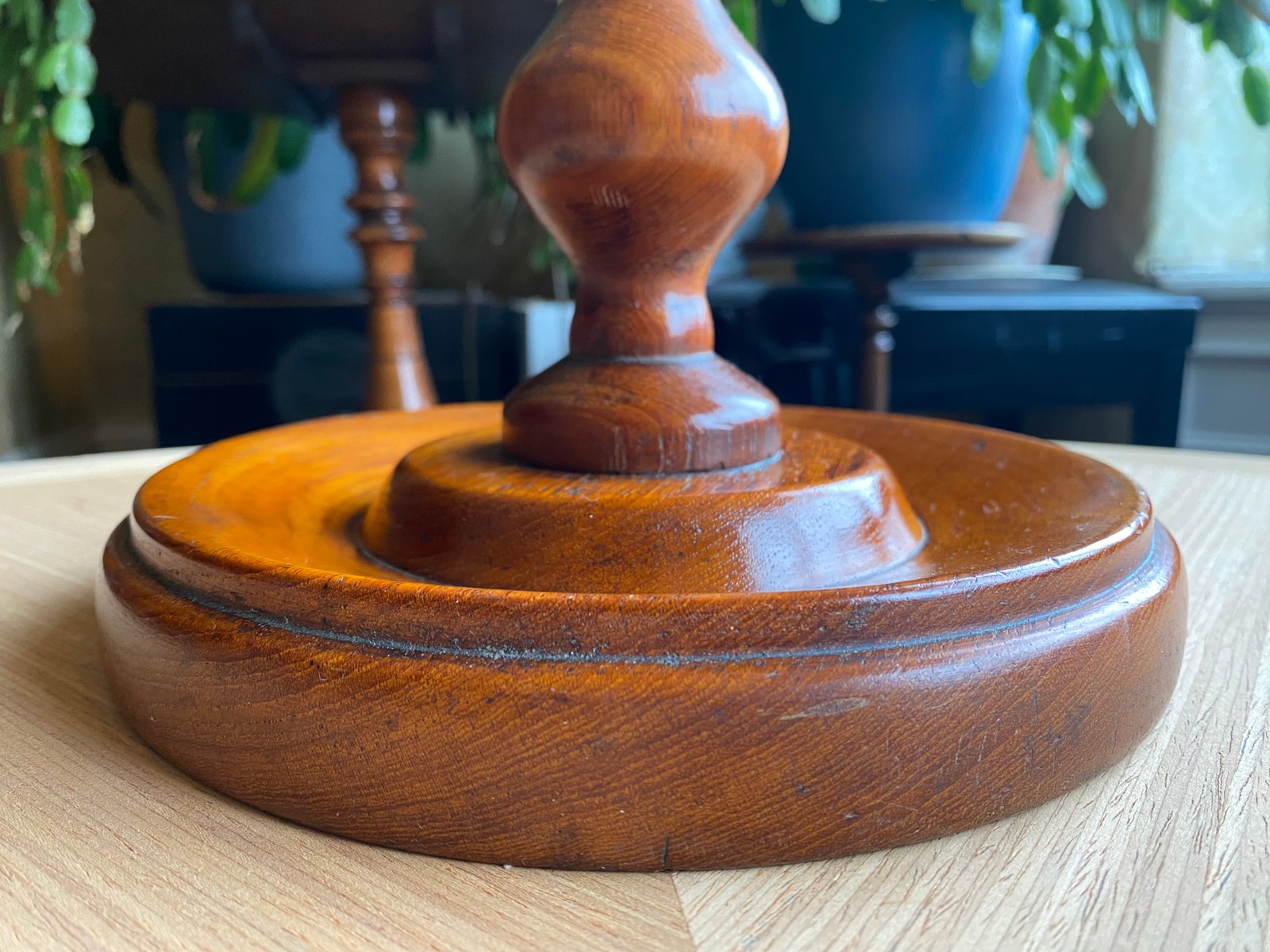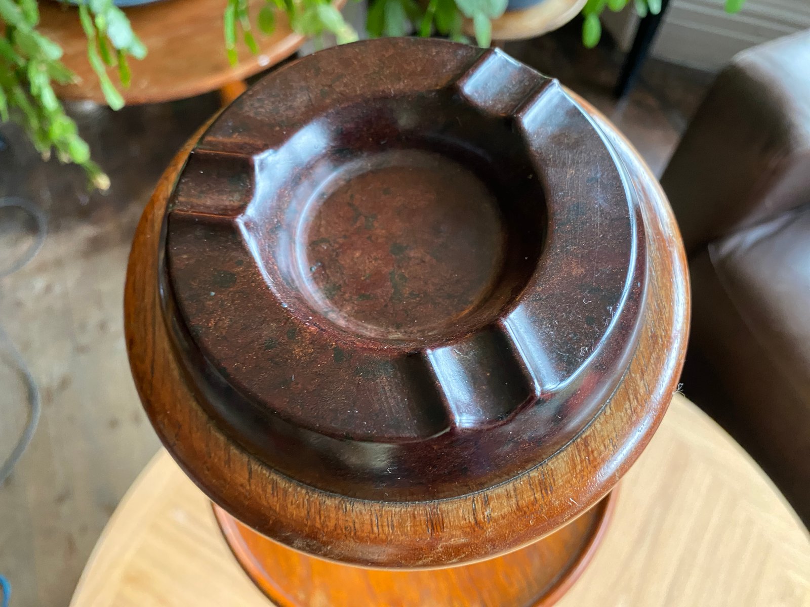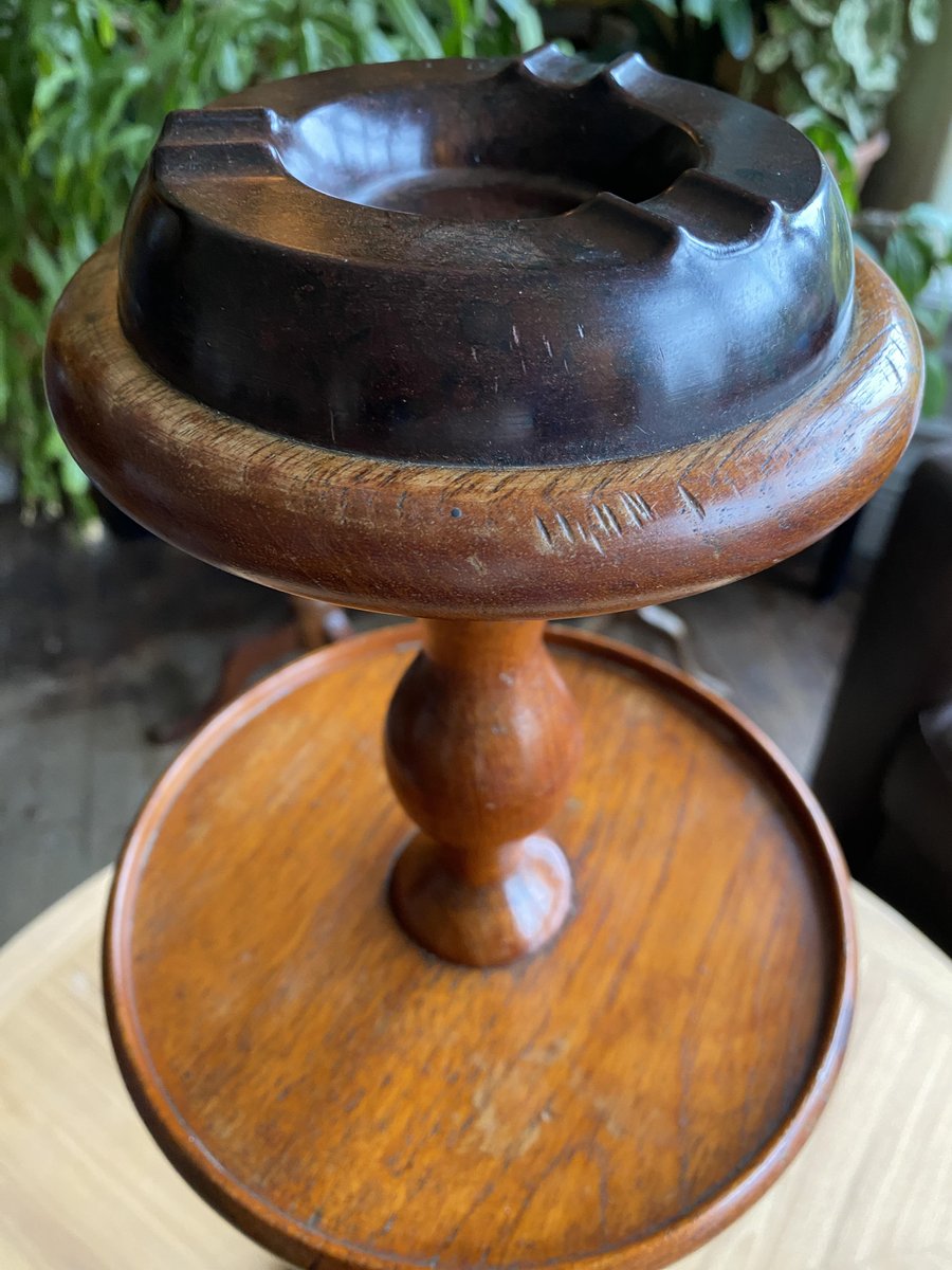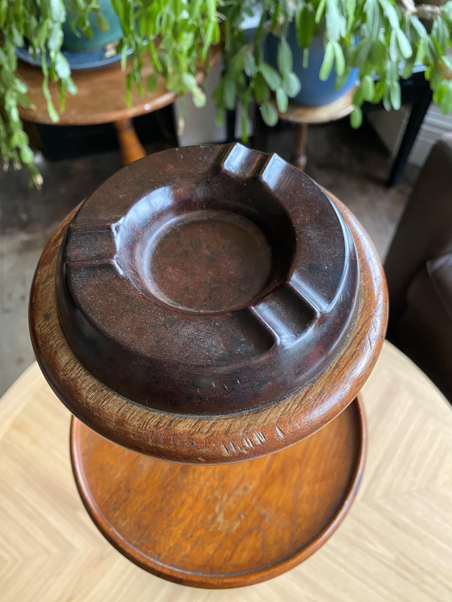 Vintage English Turned Wood 2 Tier Smokers Stand with Bakelite Ashtray, 1930