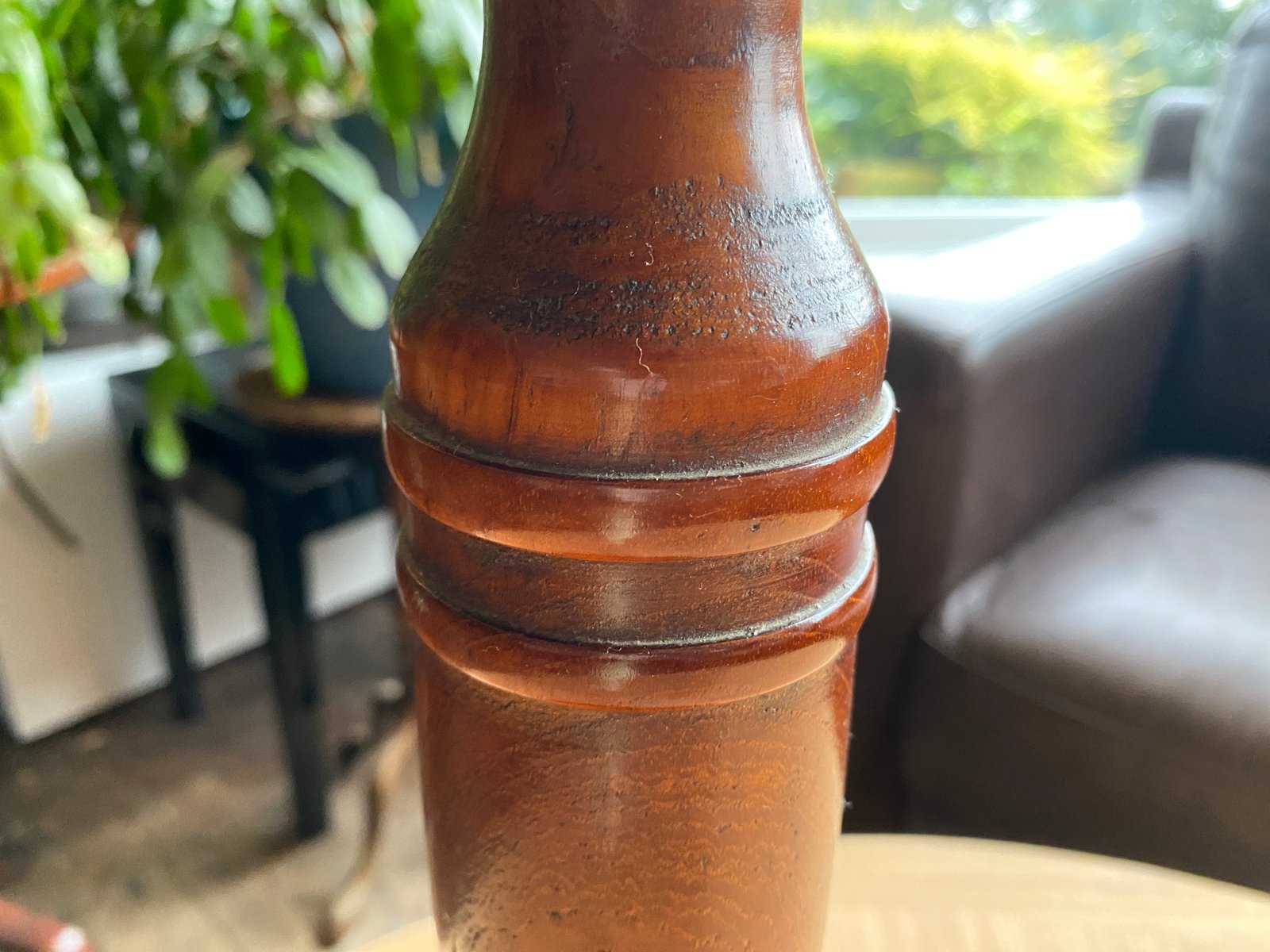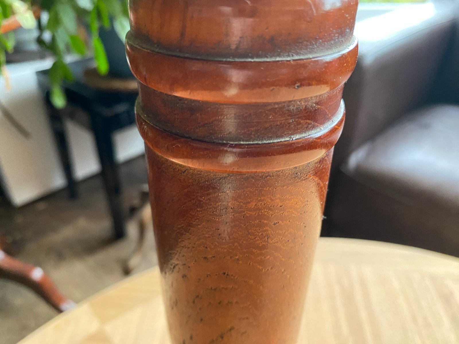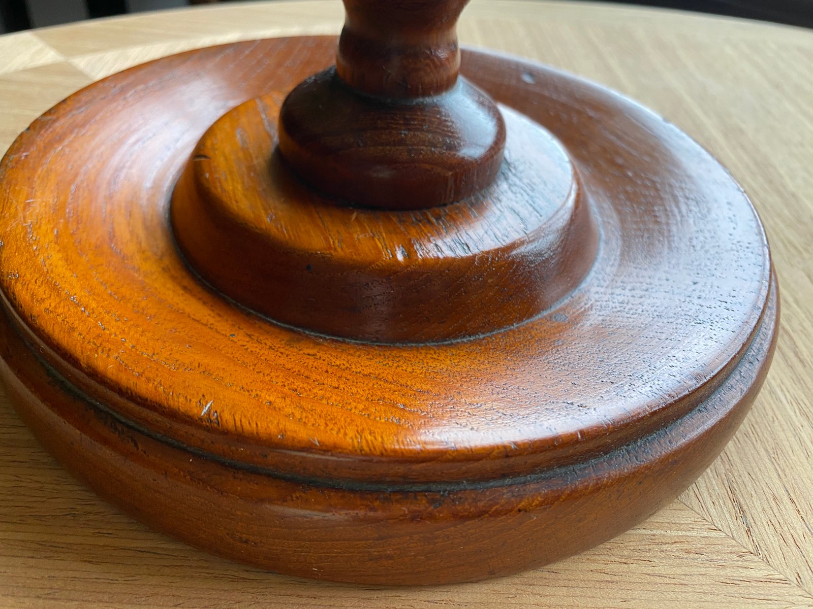 Vintage English Turned Wood 2 Tier Smokers Stand with Bakelite Ashtray, 1930