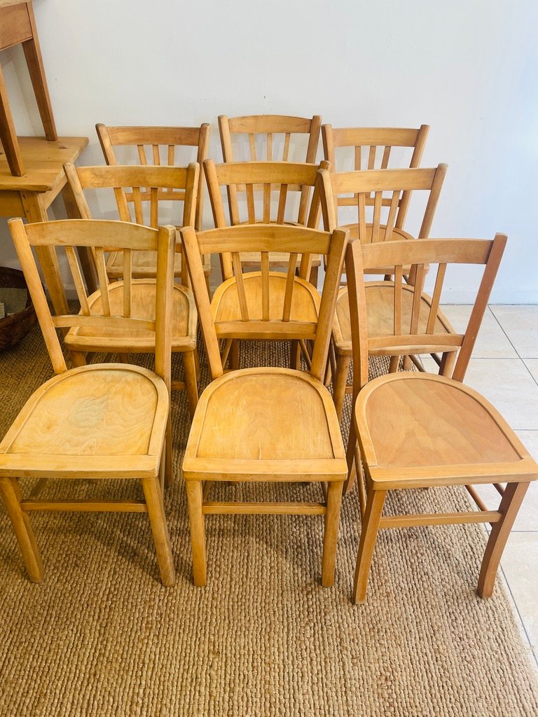 Vintage French Bistro Chairs, 1950s, Set of 9