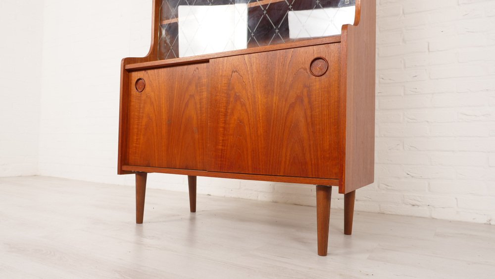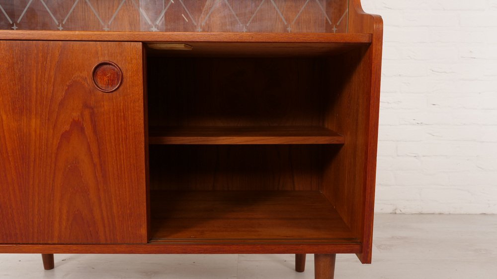 Vintage Highboard in Teak & Glass