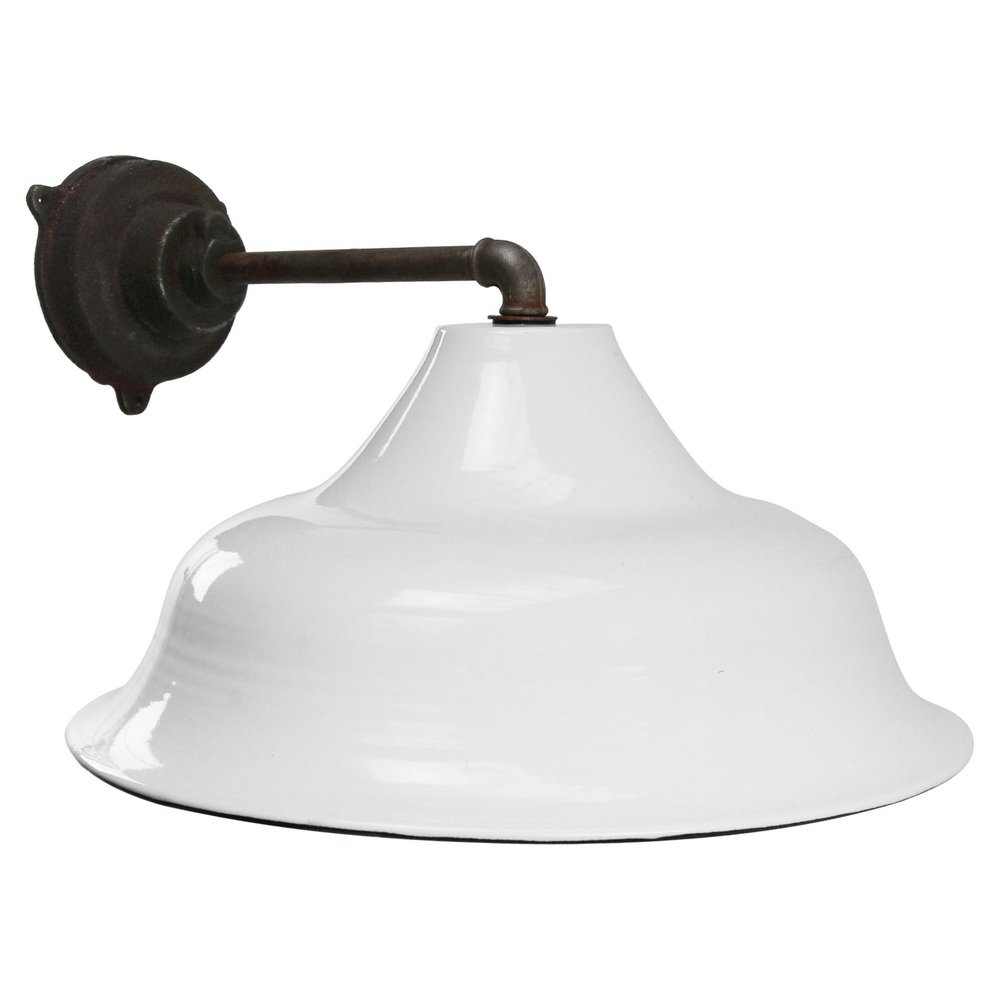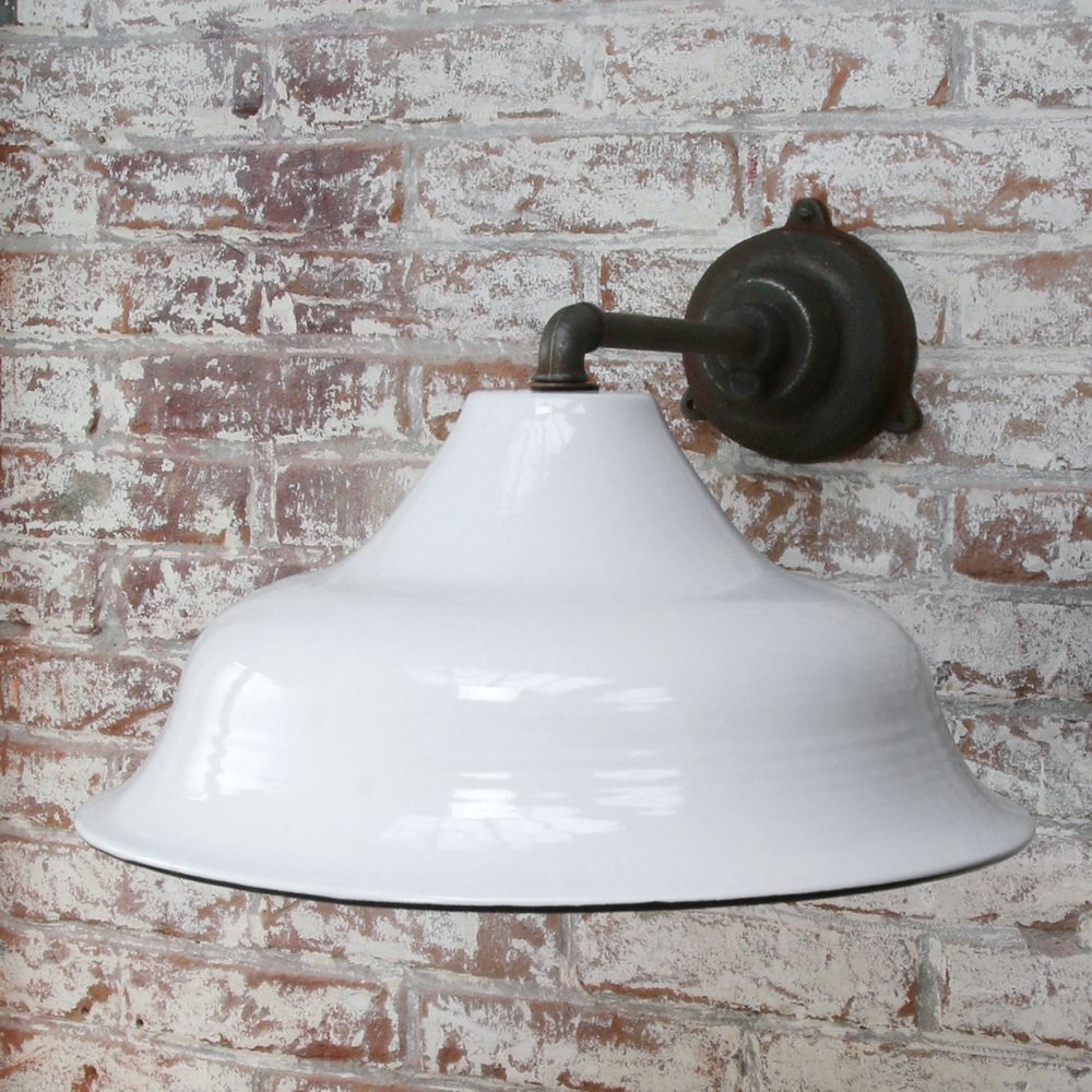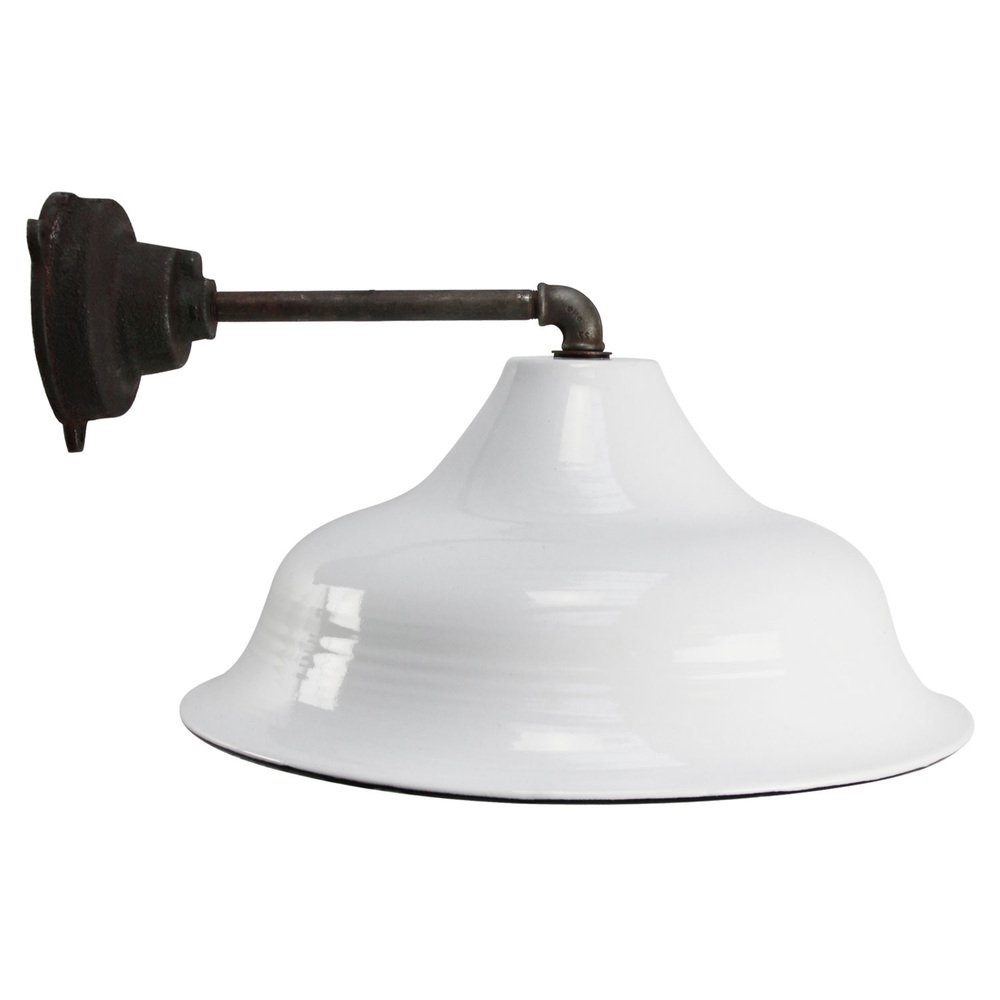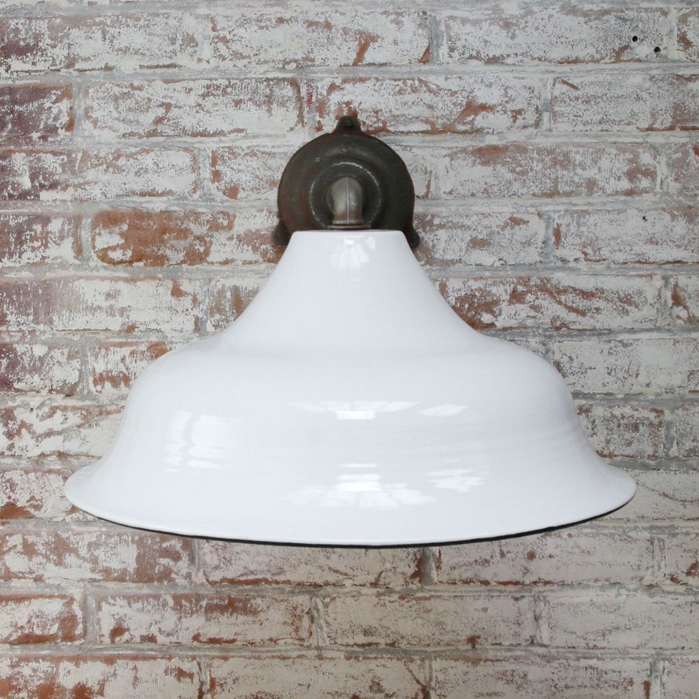 Vintage Industrial White Enamel Cast Iron Wall Light