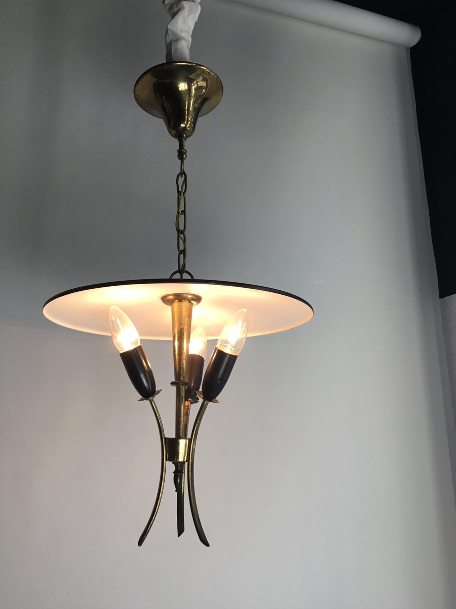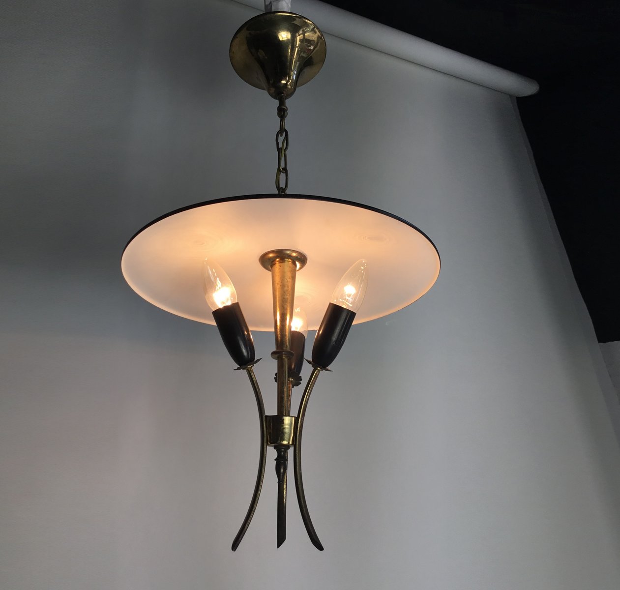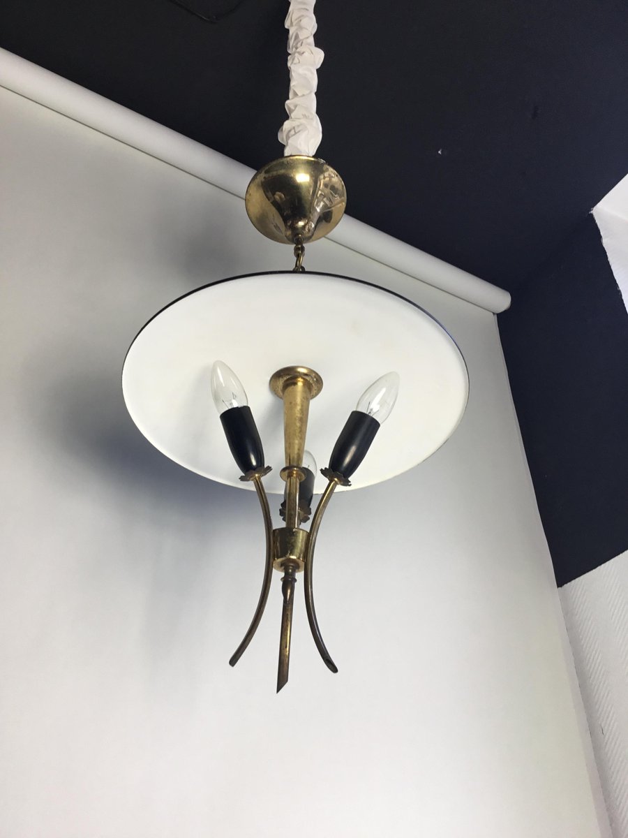 Vintage Italian Lamp in Brass with Black and White Lacquer from Stilnovo, 1950s