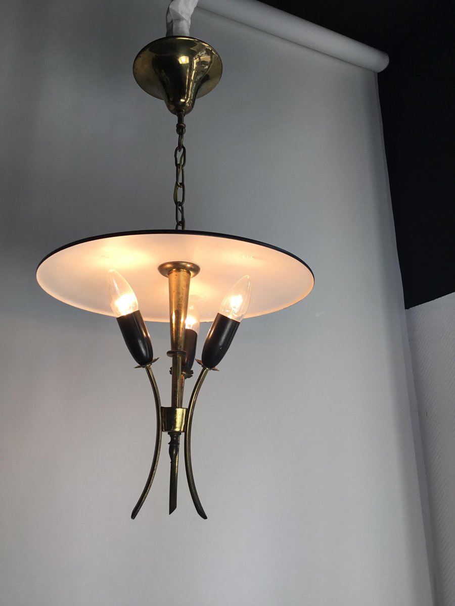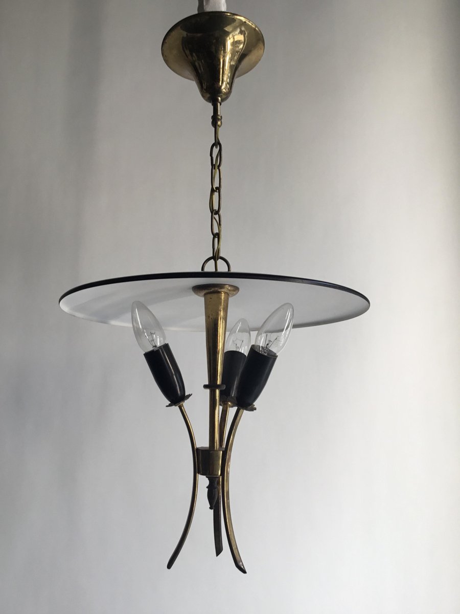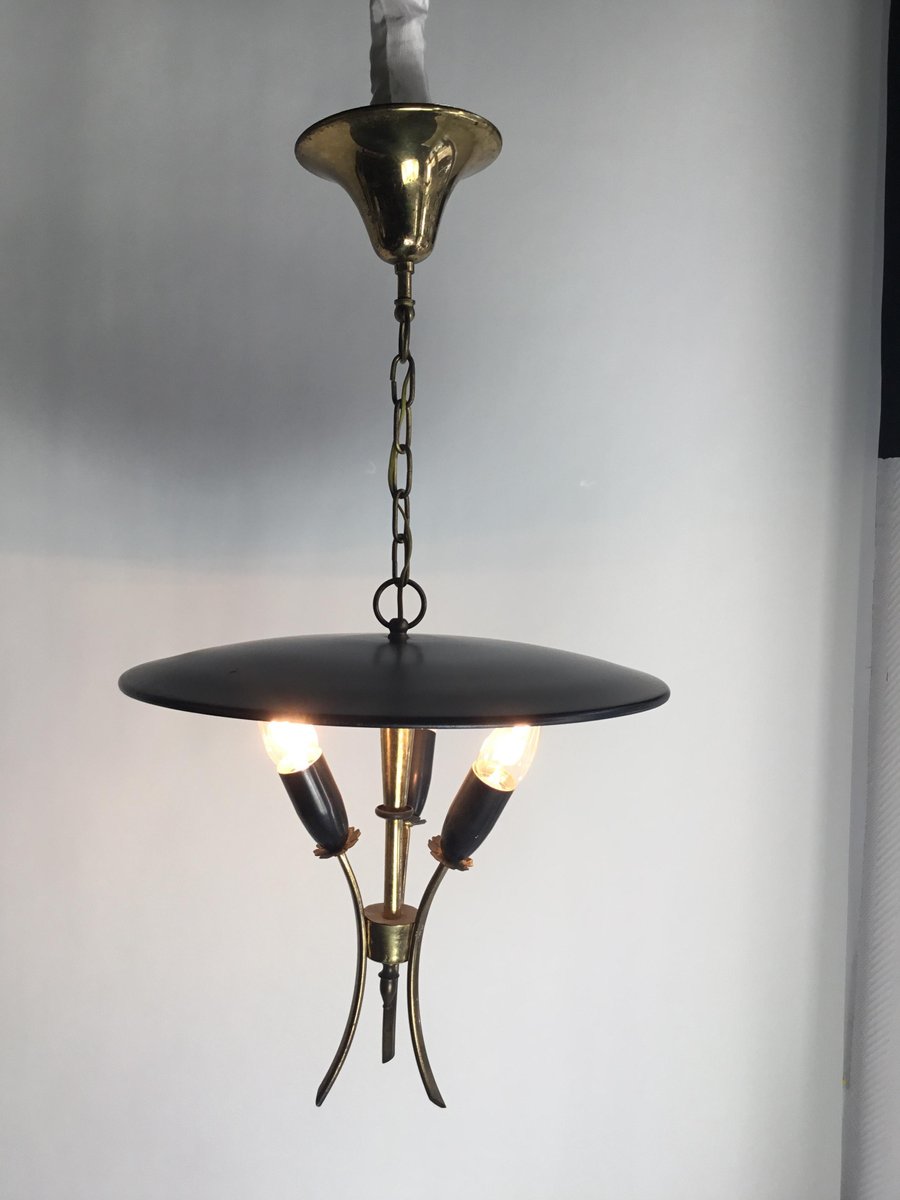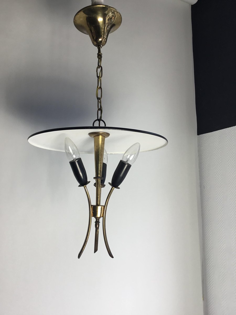 Vintage Italian Lamp in Brass with Black and White Lacquer from Stilnovo, 1950s