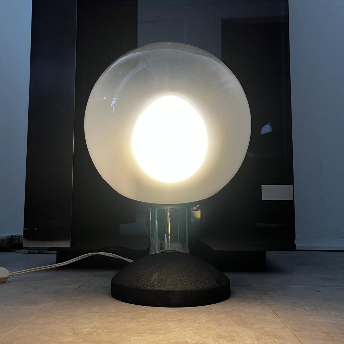 Vintage Italian Table Lamp with Murano Glass Globe and Cast Iron Base, 1970s