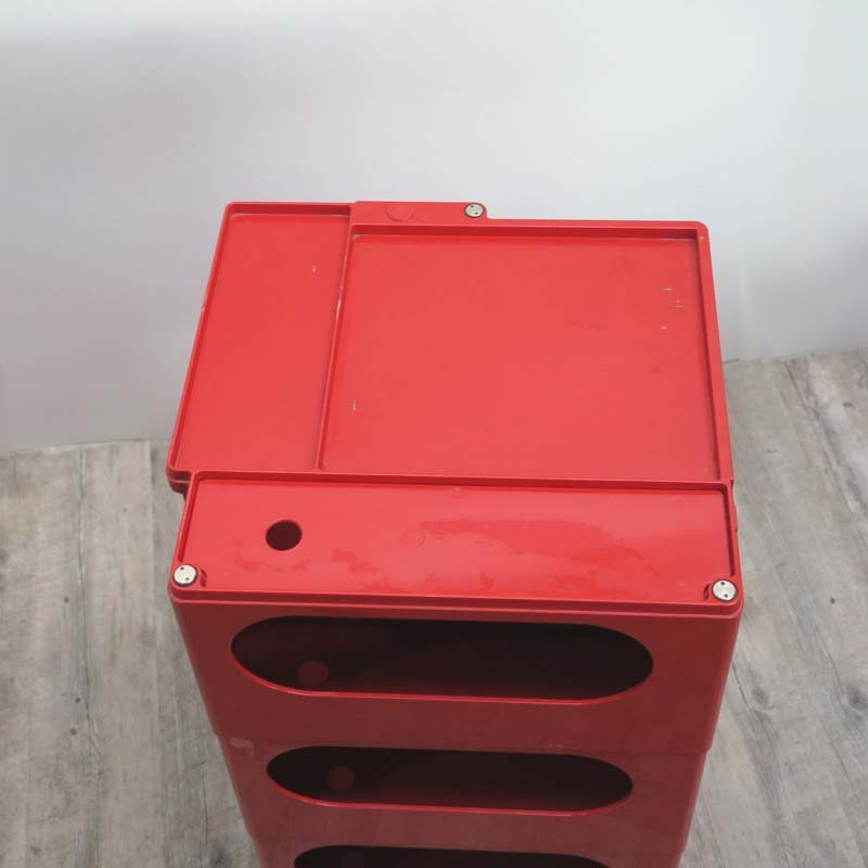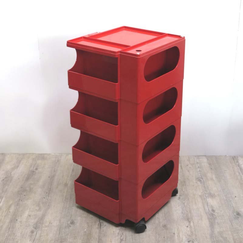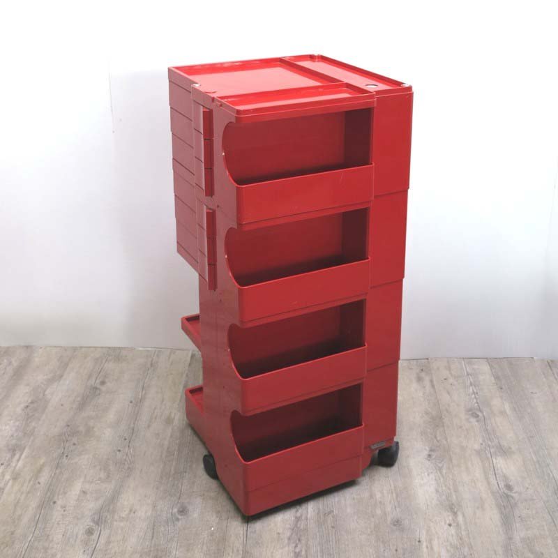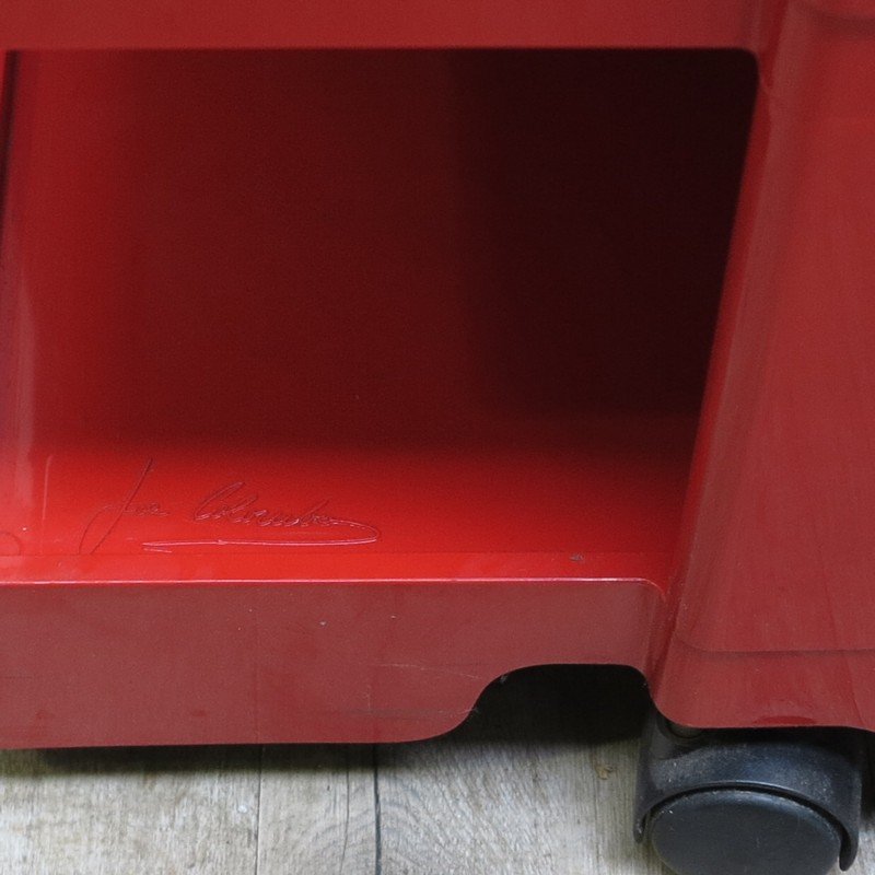Colombo’s design career was cut tragically short in 1971 when he died of heart failure at age 41. However, he was remarkably prolific during his near decade as a designer. Notable projects include some of the most iconic designs of the 1960s, such as his 1963 Elda Armchair, made completely of fiberglass; the 1964 Ragno outdoor light, which doubled as a seat; the stackable Universale chair (1965/67), which came in varying heights and was created completely from polypropylene; his 1967 modular furniture series known as the Additional Living System, which was composed of different-size curved pieces that could be pinned together in various configurations to form chairs, sofas, or entire living areas, and which ultimately included the famous 1969 Tubo lounge chair; and the Optic alarm clock and Bobby trolley (both 1970).