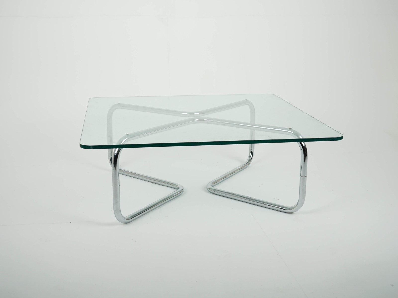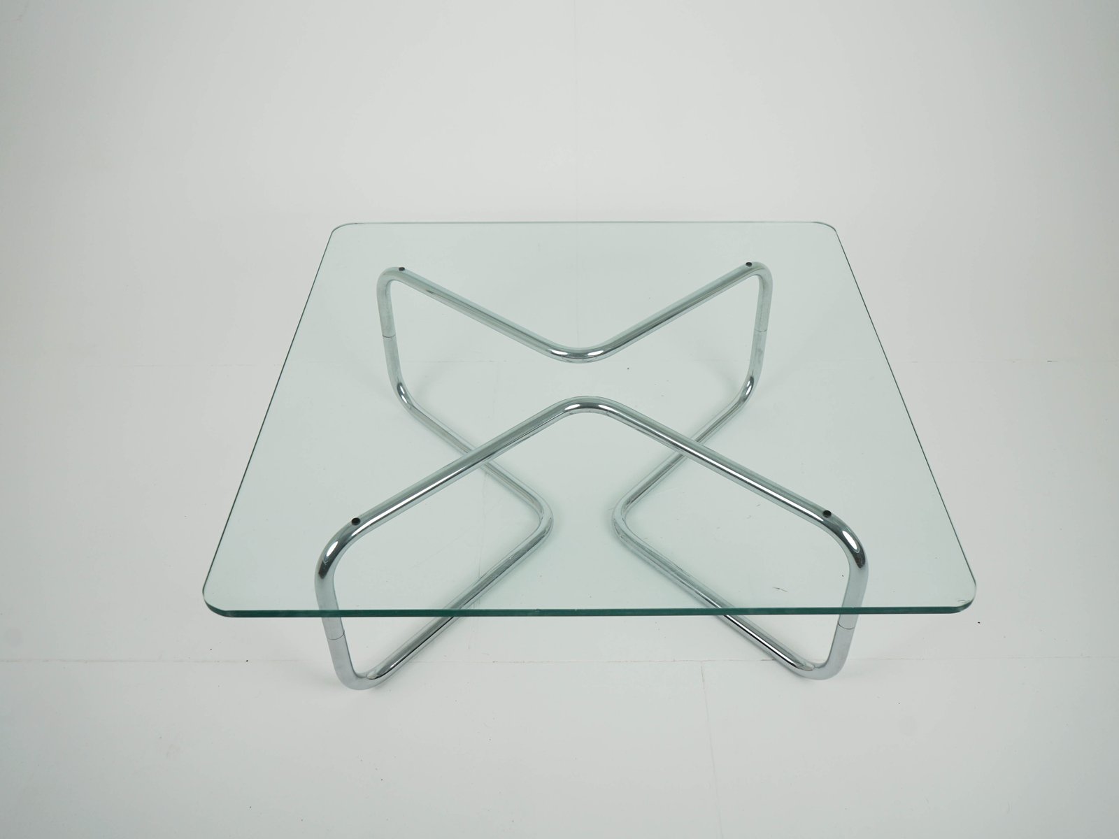 Vintage Space Age Chrome and Glass Coffee Table, 1980s