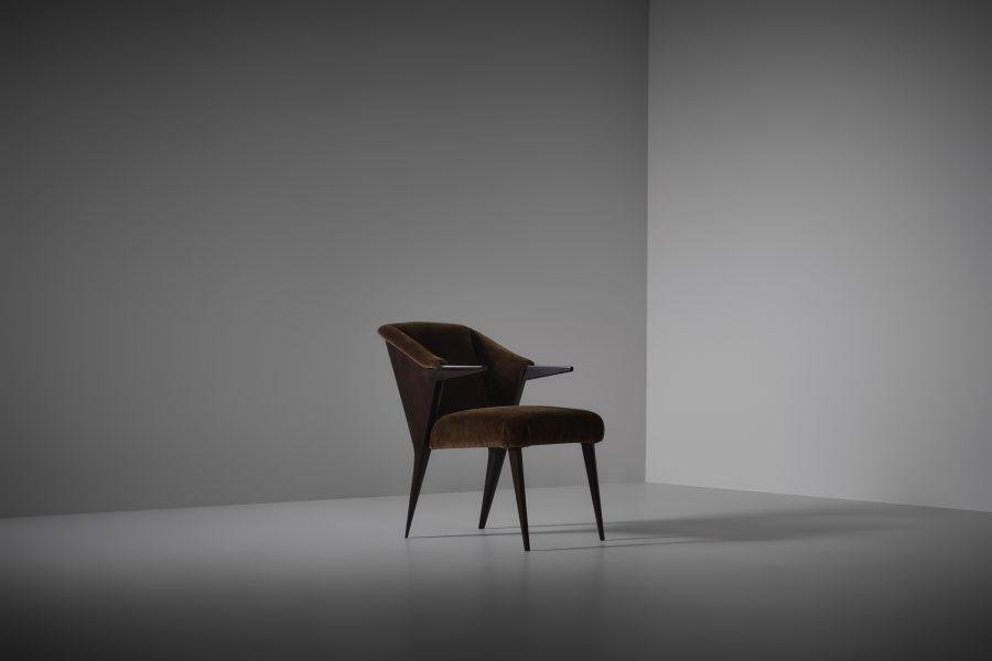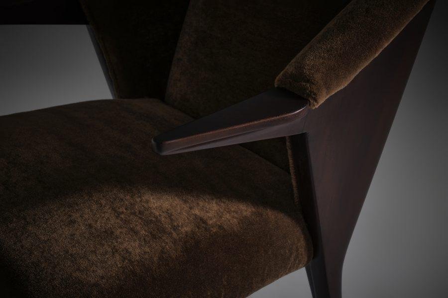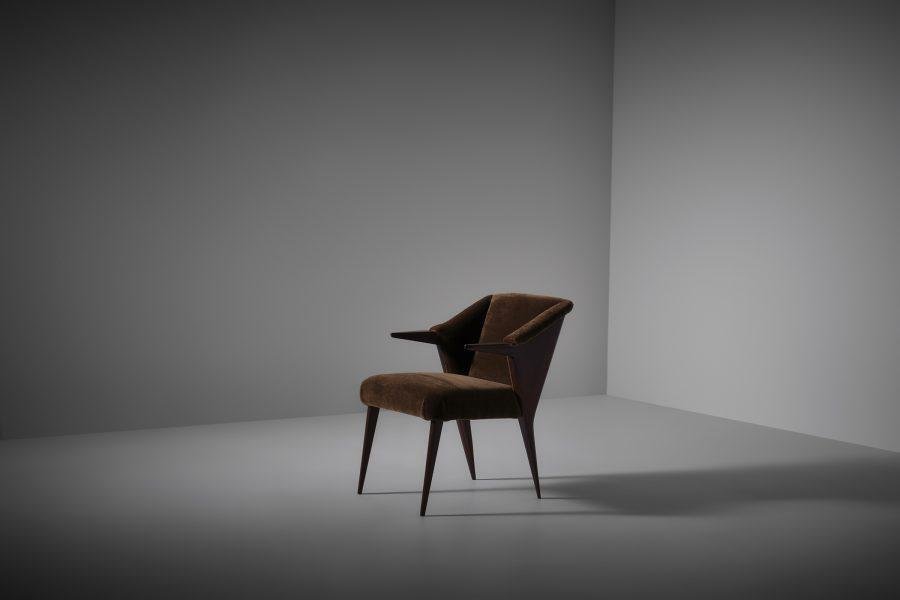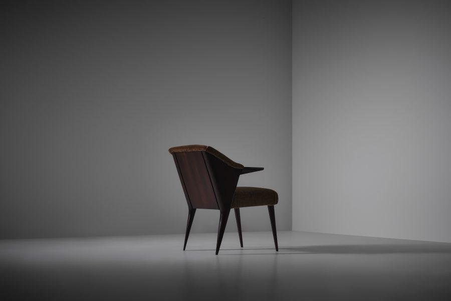 Walnut and Mohair Side Chair by Augusto Romano, Italy, 1940s