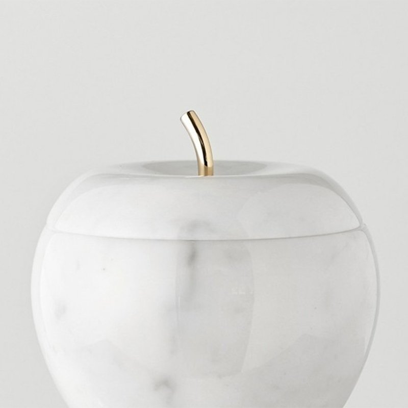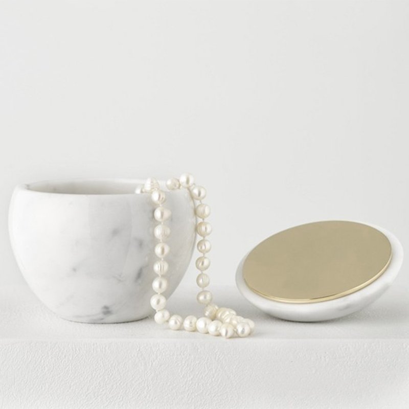 White Carrara Marble and Brass Mirror Apple Box