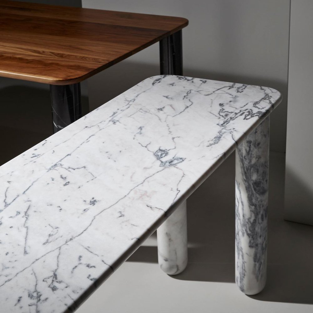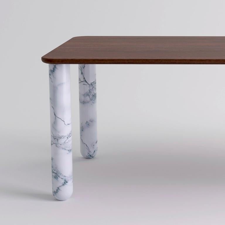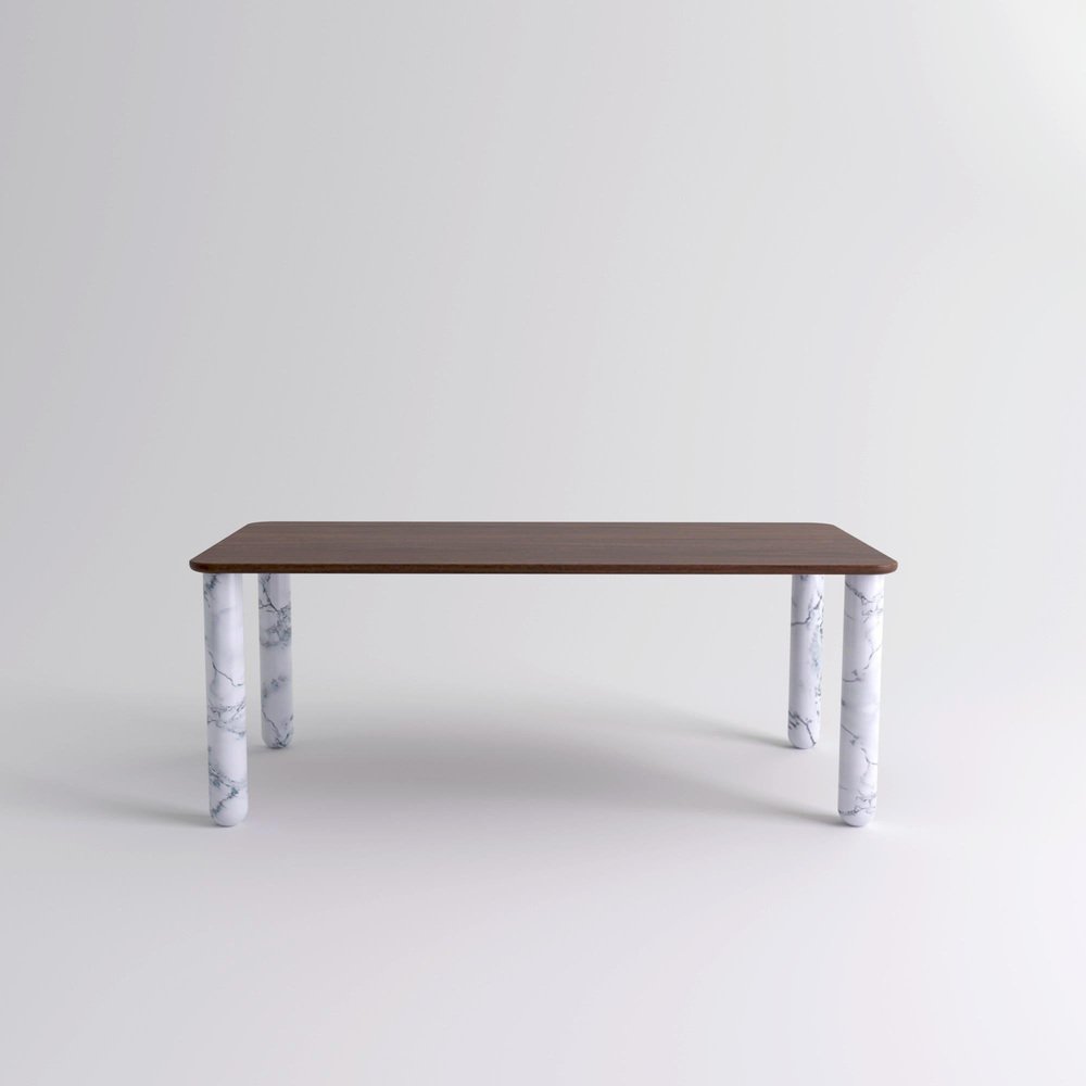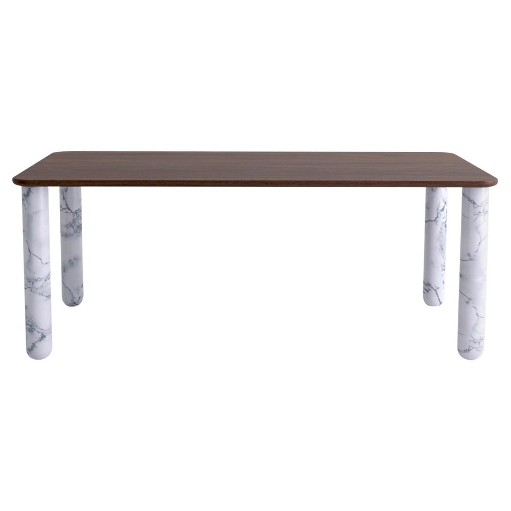 XLarge Walnut and White Marble Sunday Dining Table by Jean-Baptiste Souletie